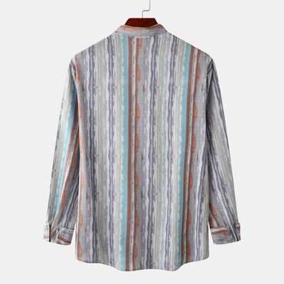 Men's Casual Vintage Striped Long Sleeve Button-Down Shirt