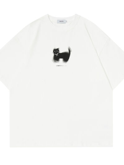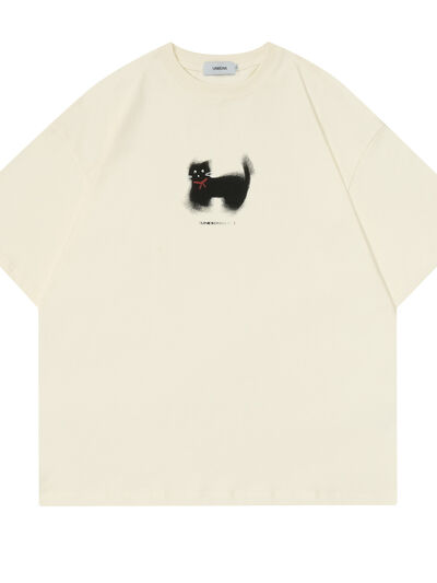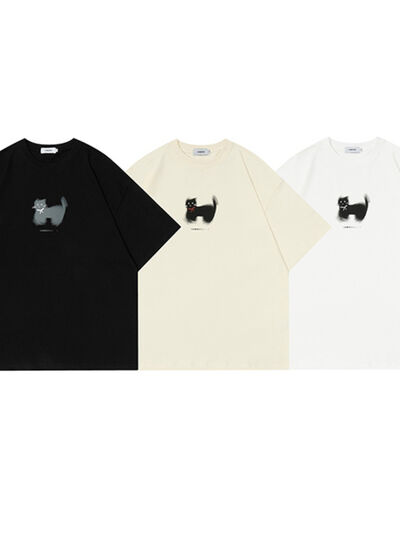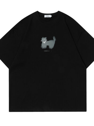 Men's Cat Graphic Round Neck Short Sleeve T-Shirt