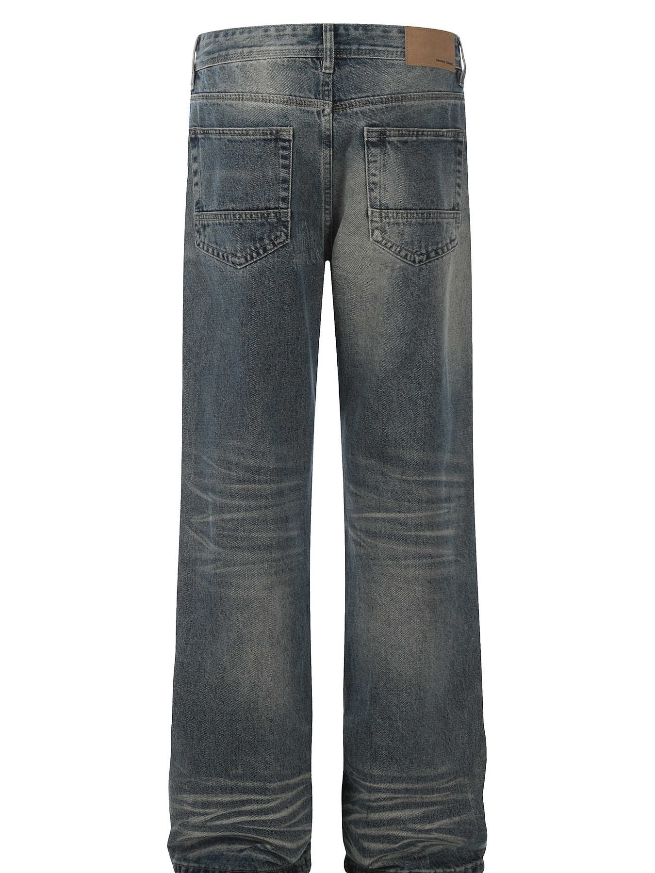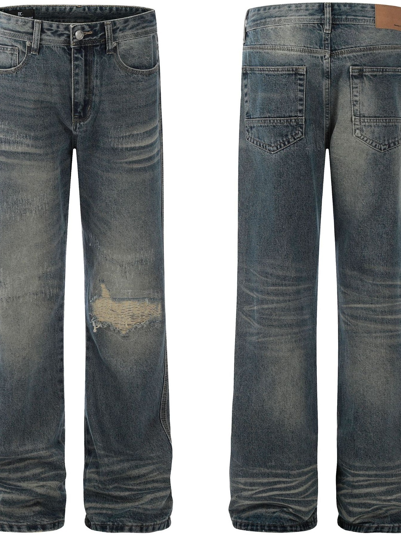 Men's Cat's whisker Washed Distressed Straight Jeans