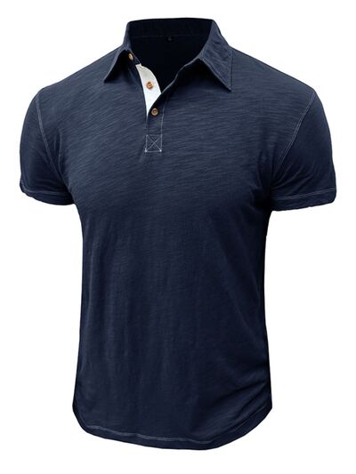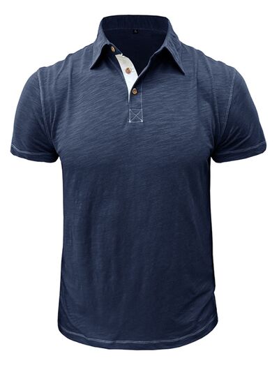 Men's Classic Heathered Polo Shirt with Contrast Buttons