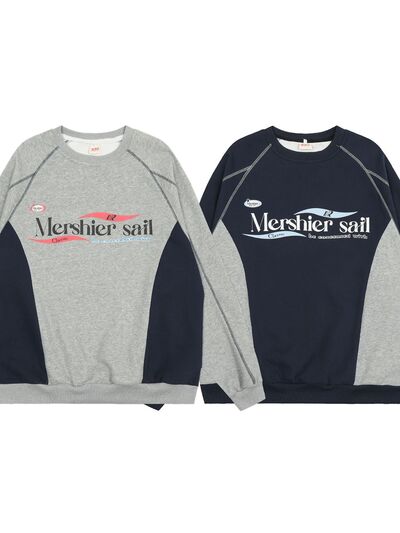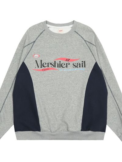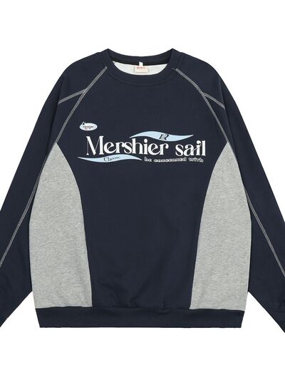 Men's Color Block Graphic Sweatshirt with Contrast Stitching
