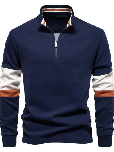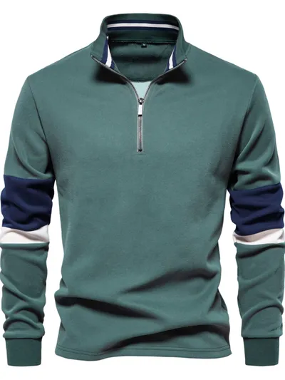 Men's Color Block Long Sleeve Polo