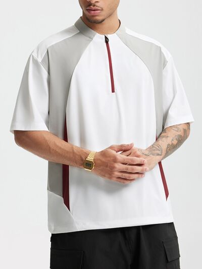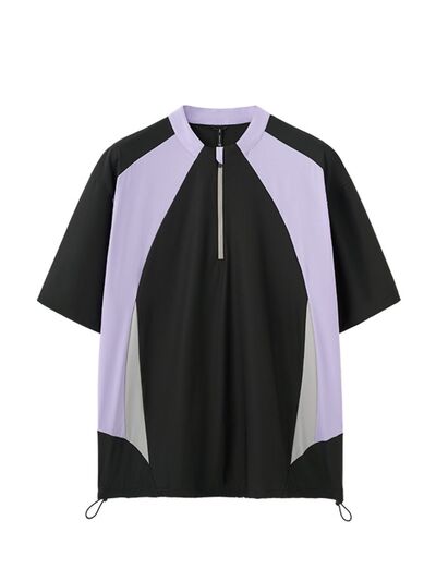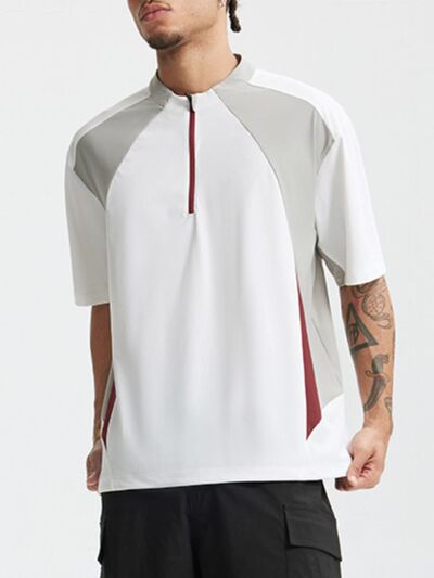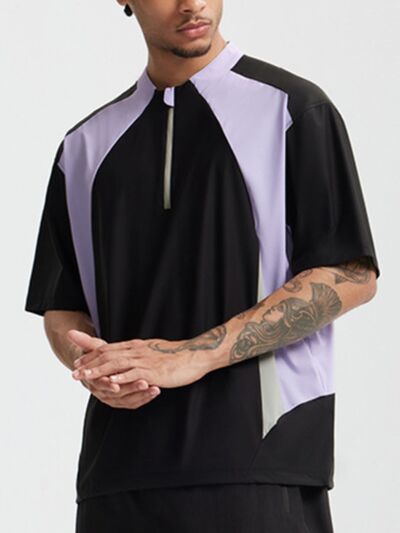 Men's Color Block Quick-Dry Half Zip T-Shirt