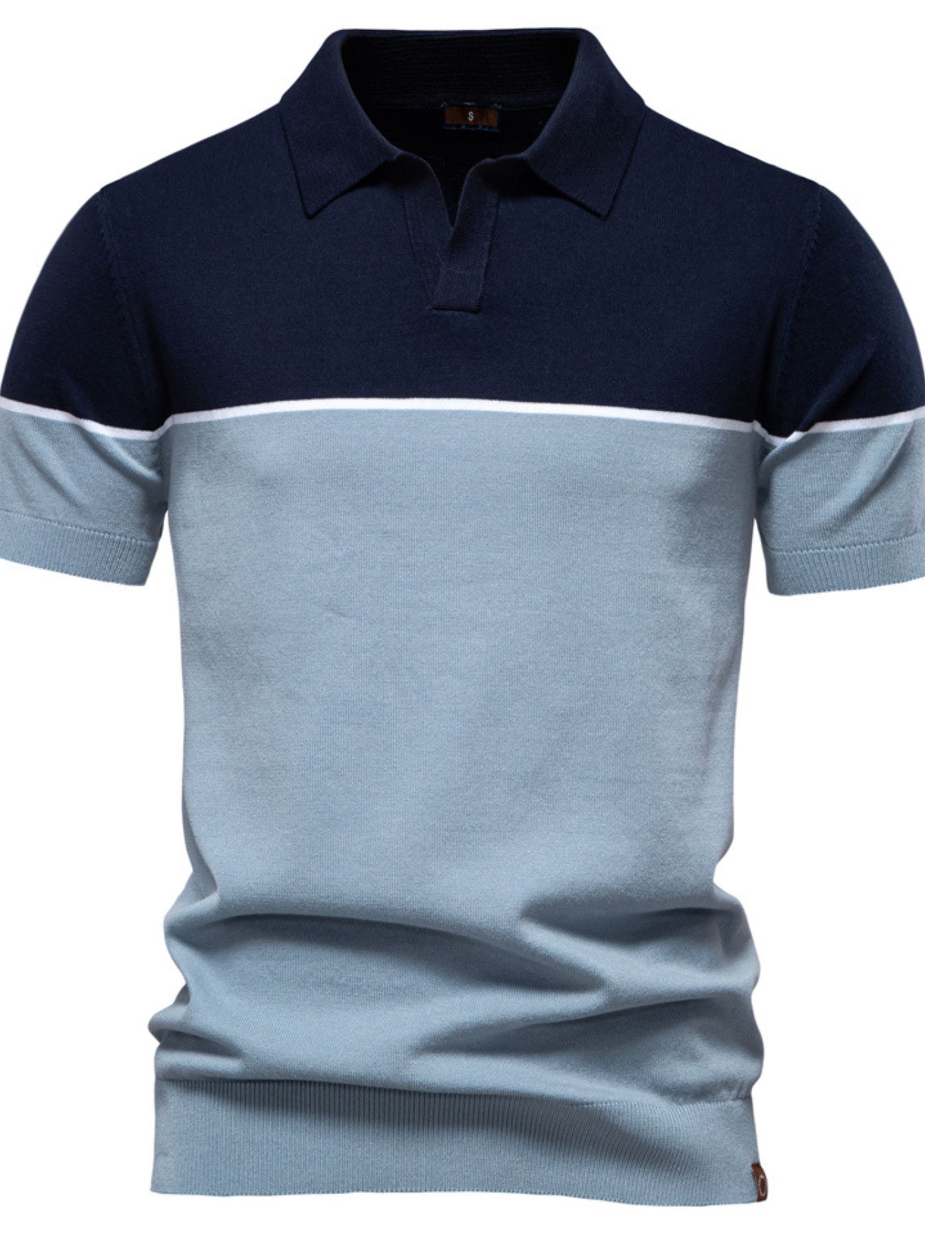 Men's Color Block Short Sleeve Knit Polo Shirt