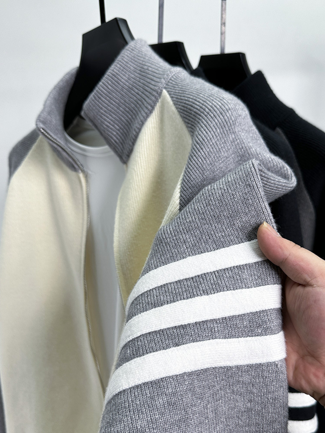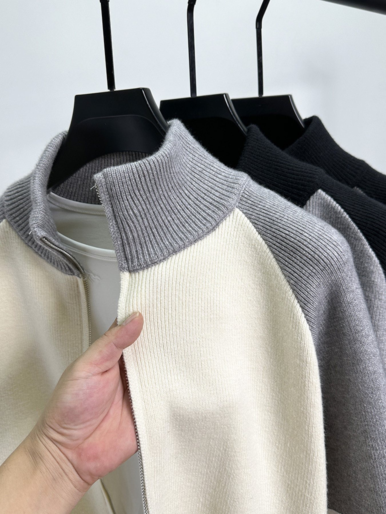 Men's Color Block Zip-Up Cardigan