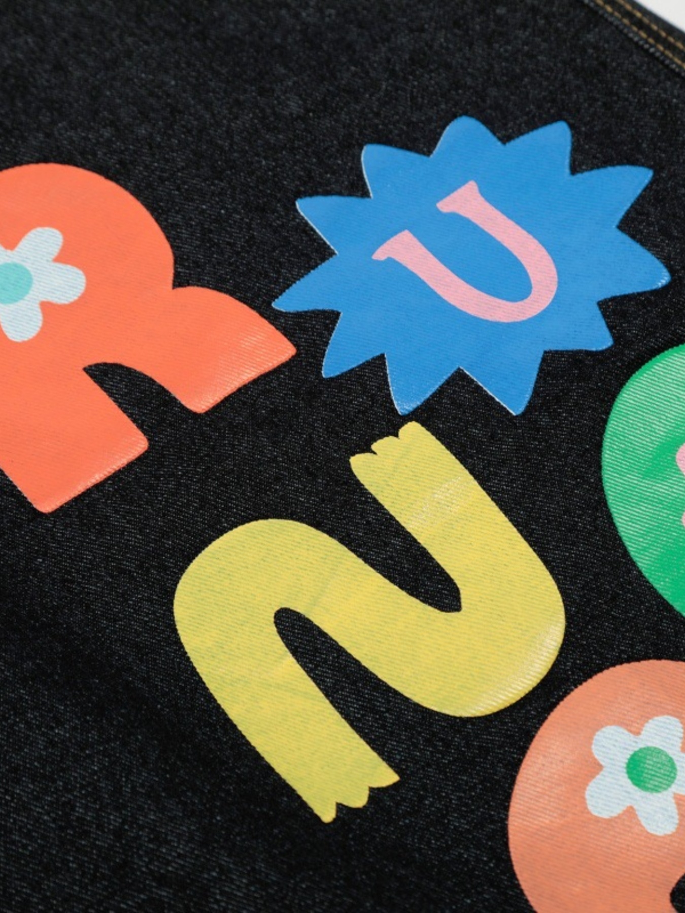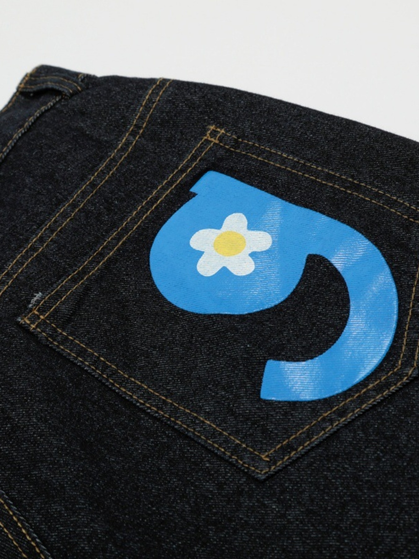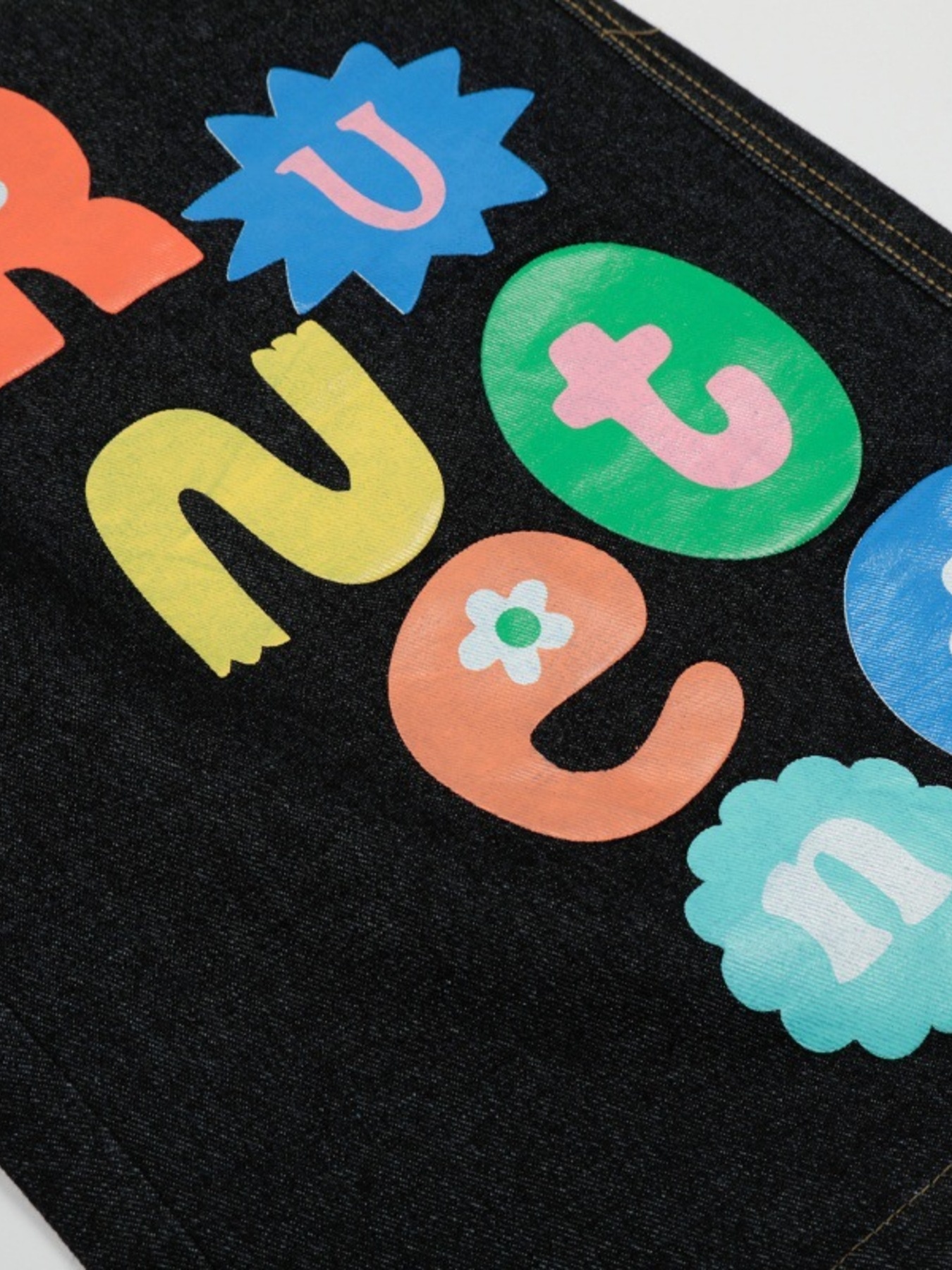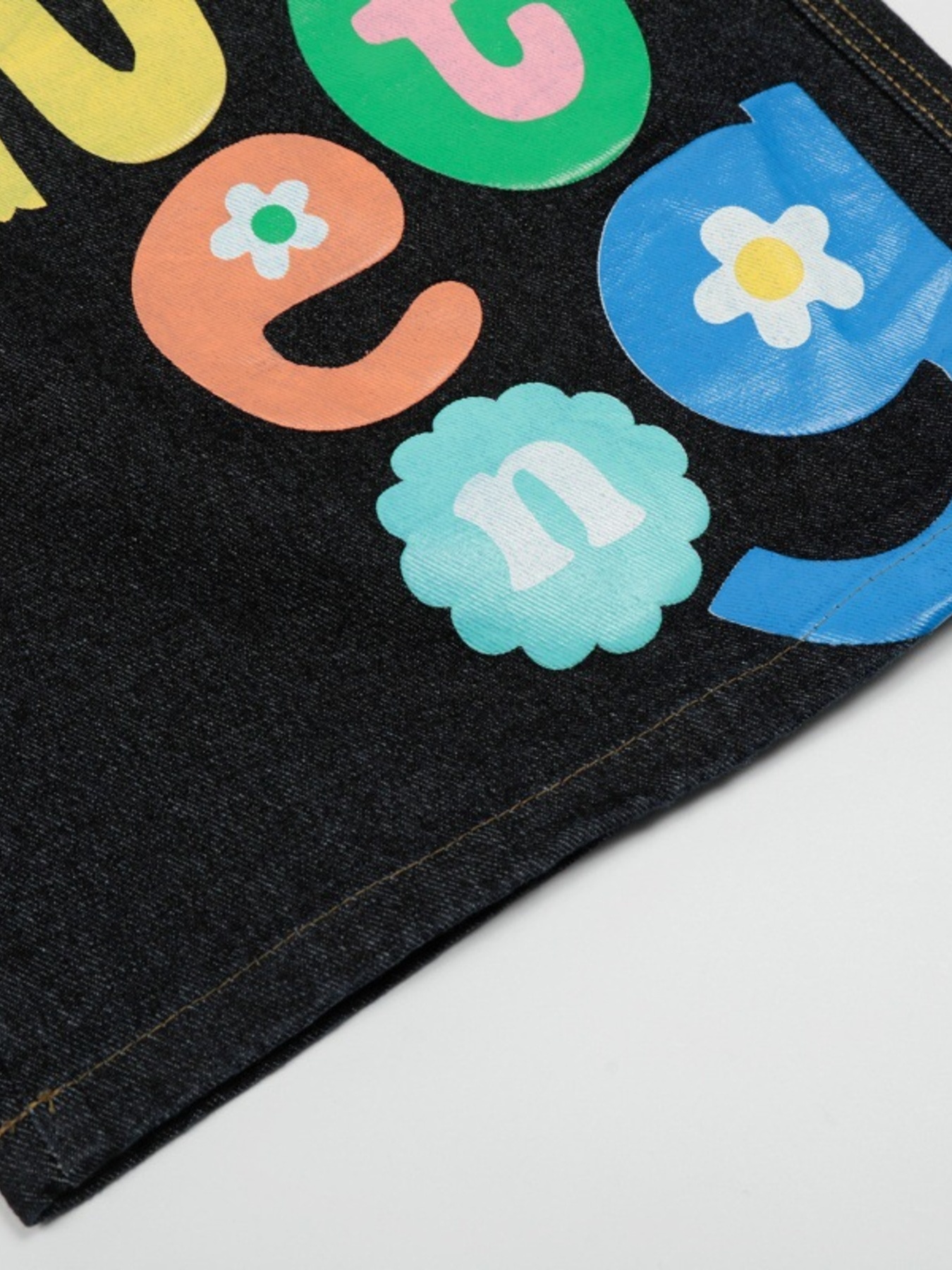 Men's Colorful Letter Graphic Bermuda Denim Shorts