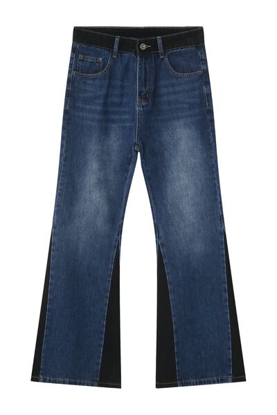 Men's Contrast Bootcut Jeans with Pockets