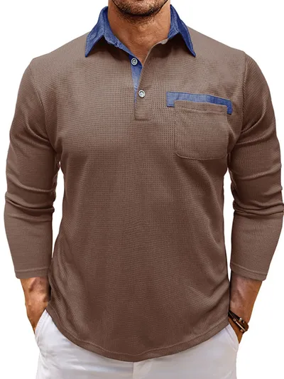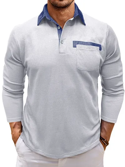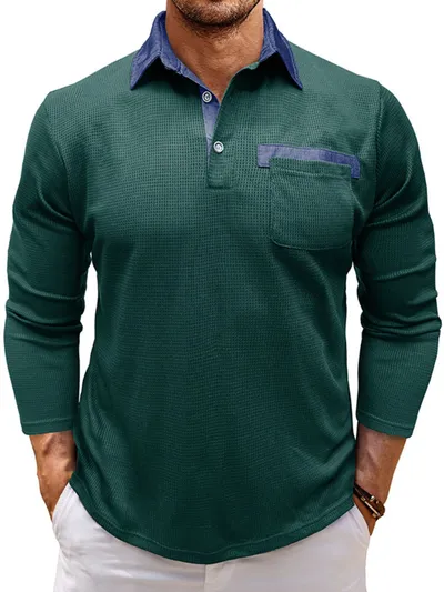 Men's Contrast Collar Long Sleeve Casual Polo Shirt