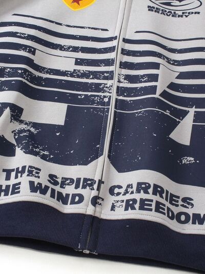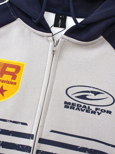 Men's Contrast Drawstring Zip-Up Hoodie