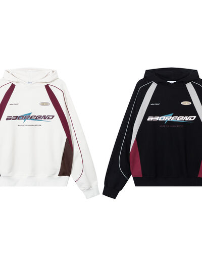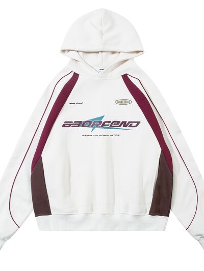 Men's Contrast Letter Long Sleeve Hoodie