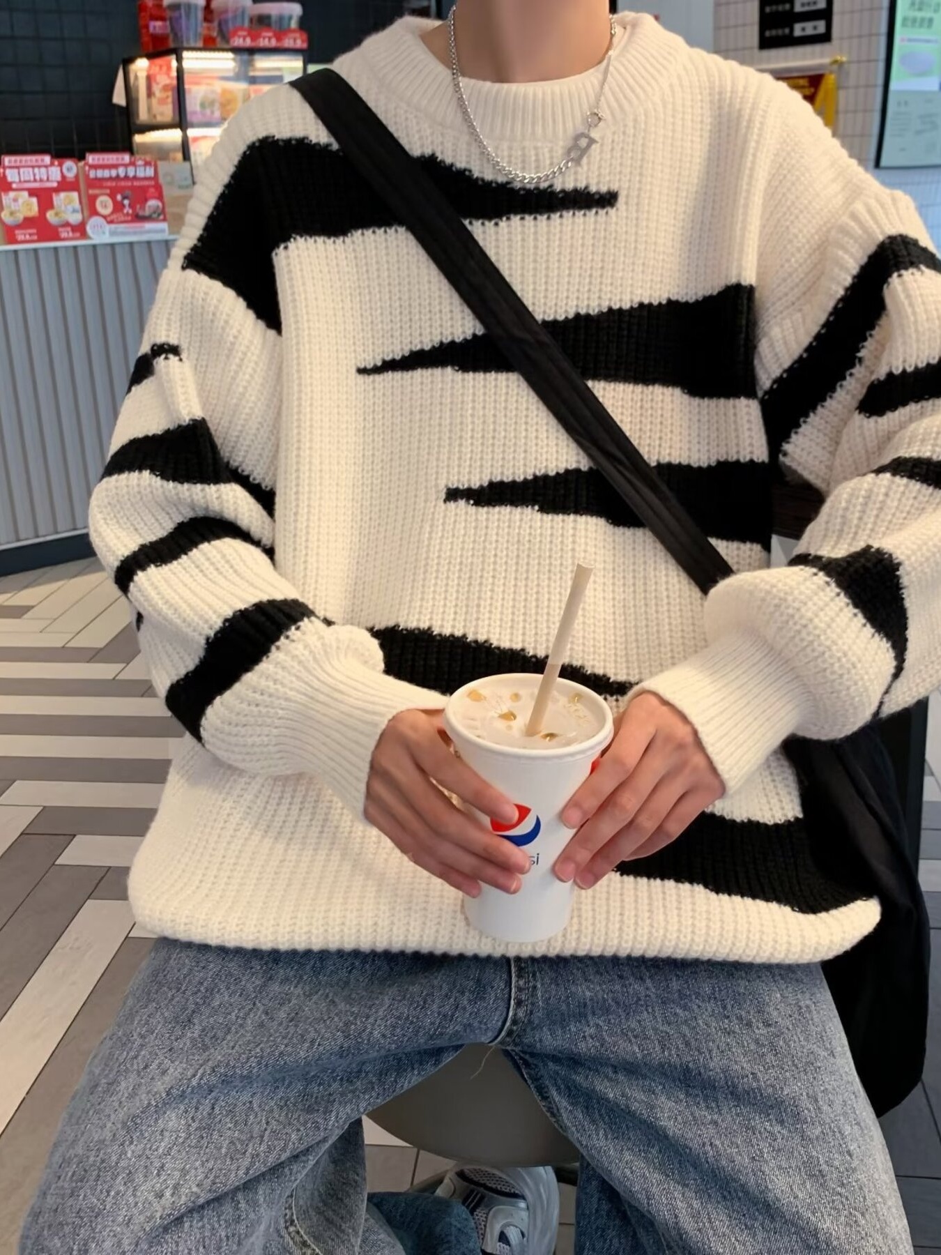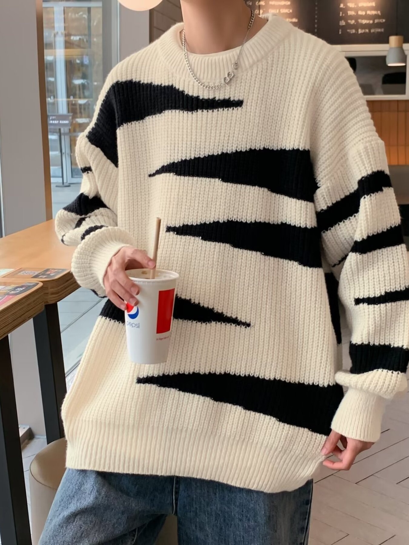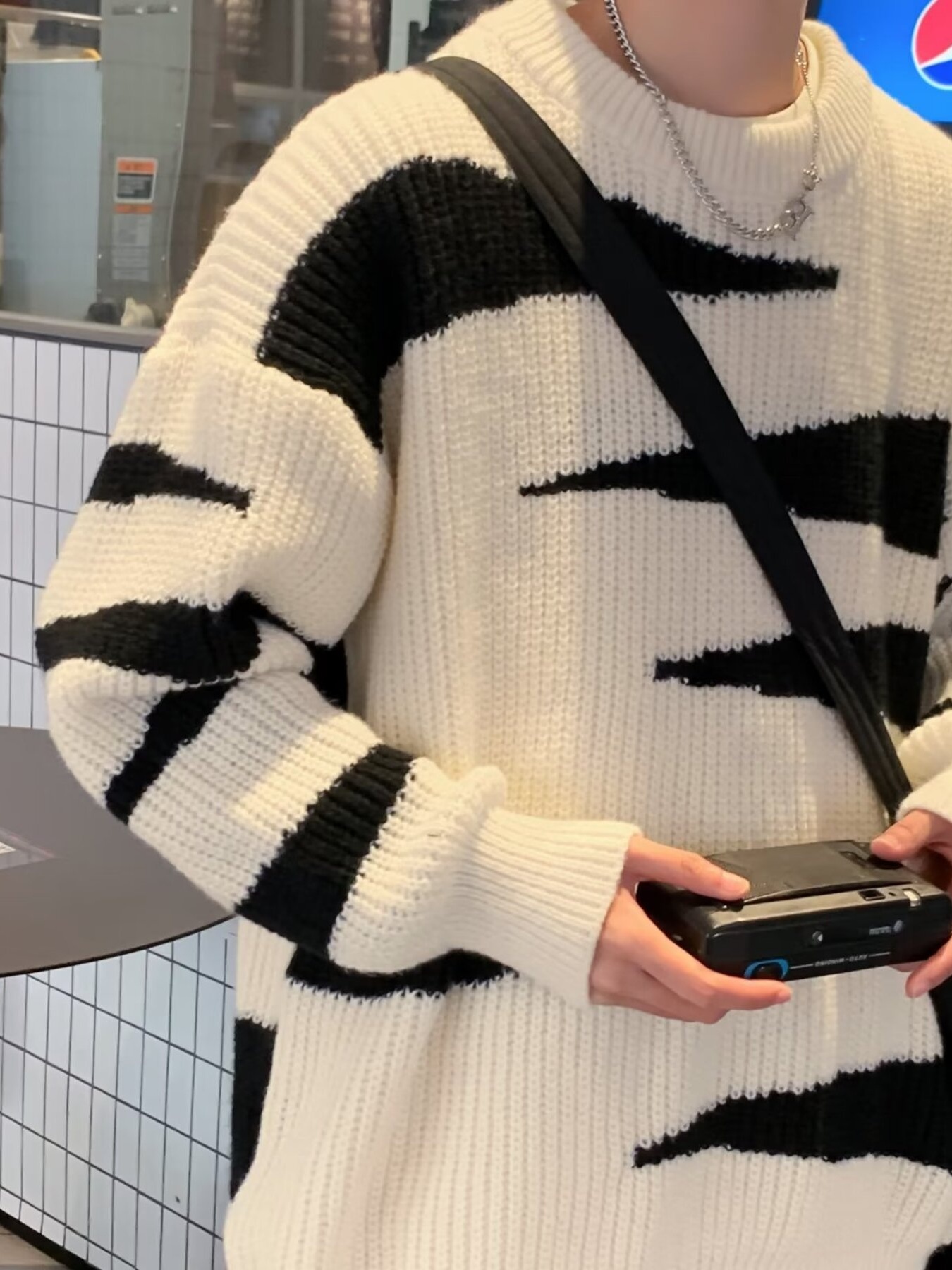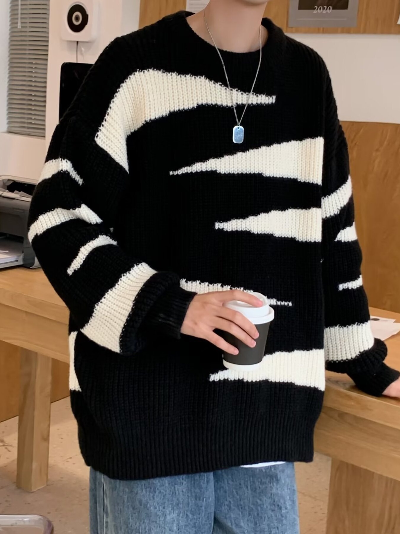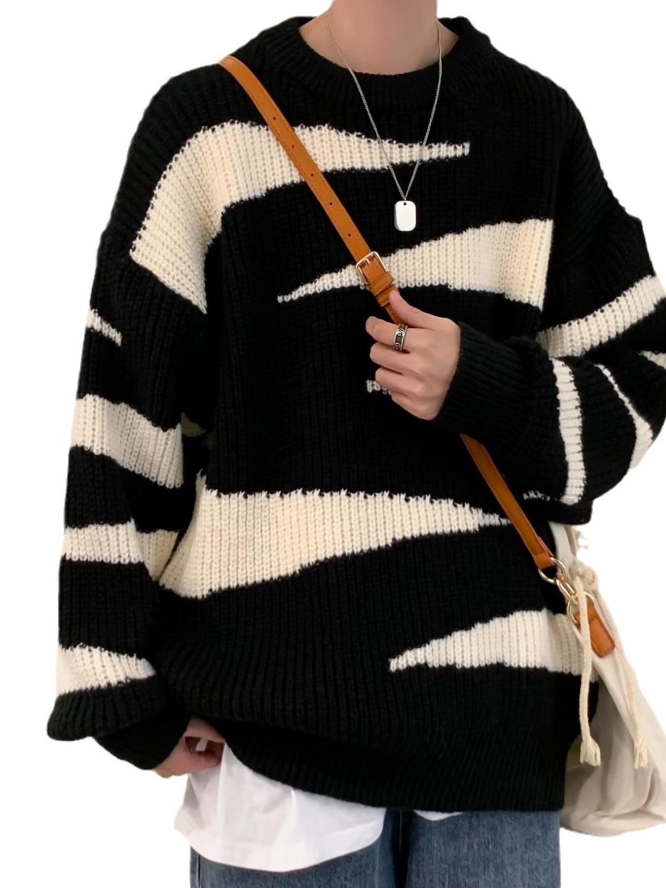 Men's Contrast Round Neck Long Sleeve Sweater