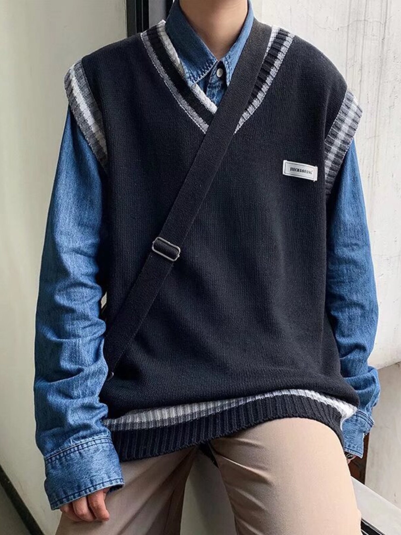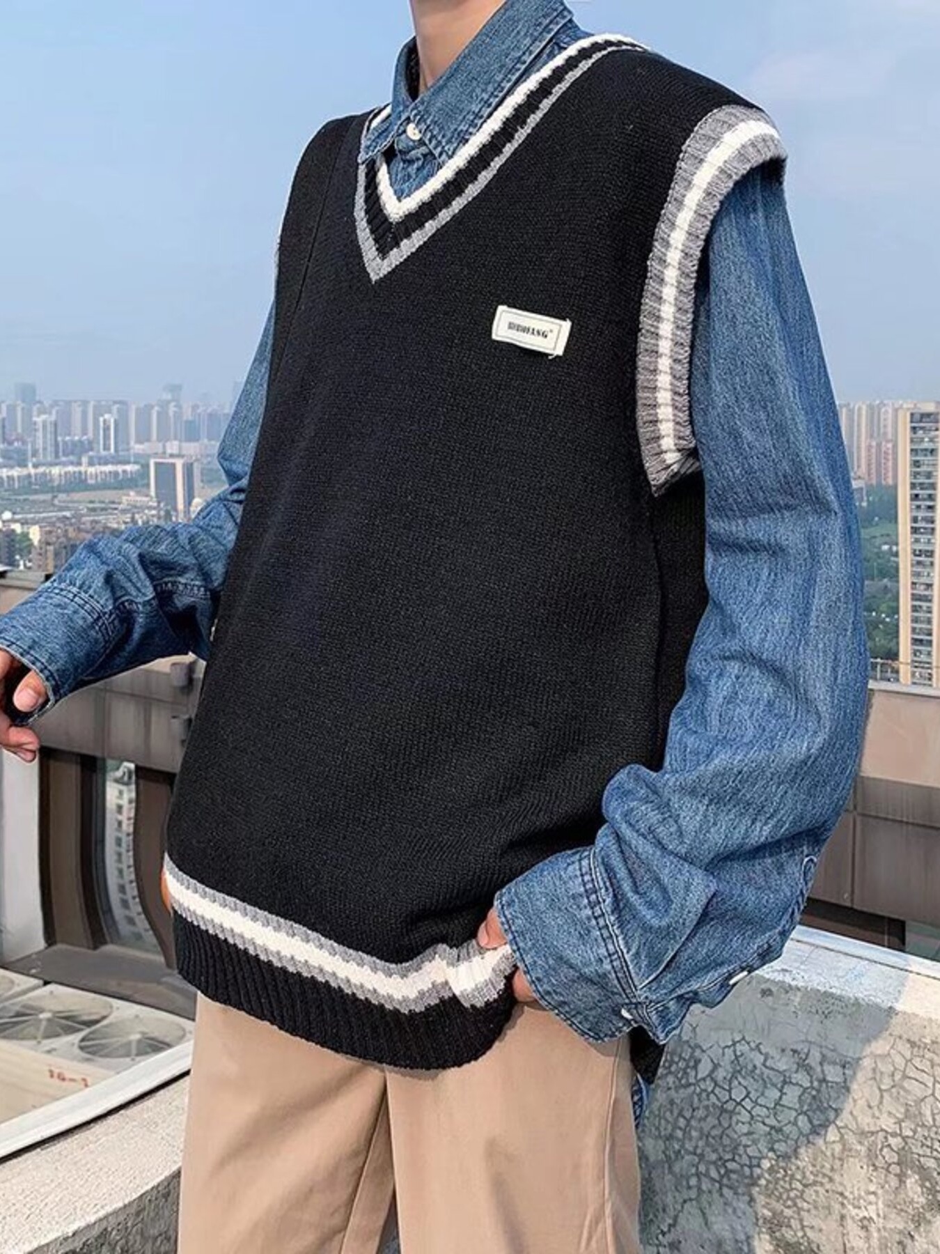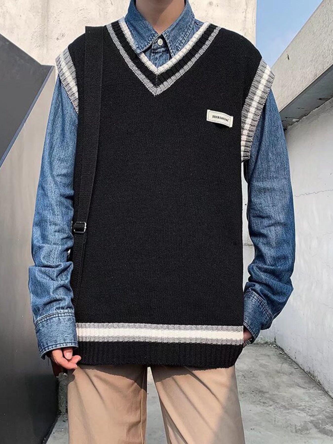 Men's Contrast Trim Sweater Vest