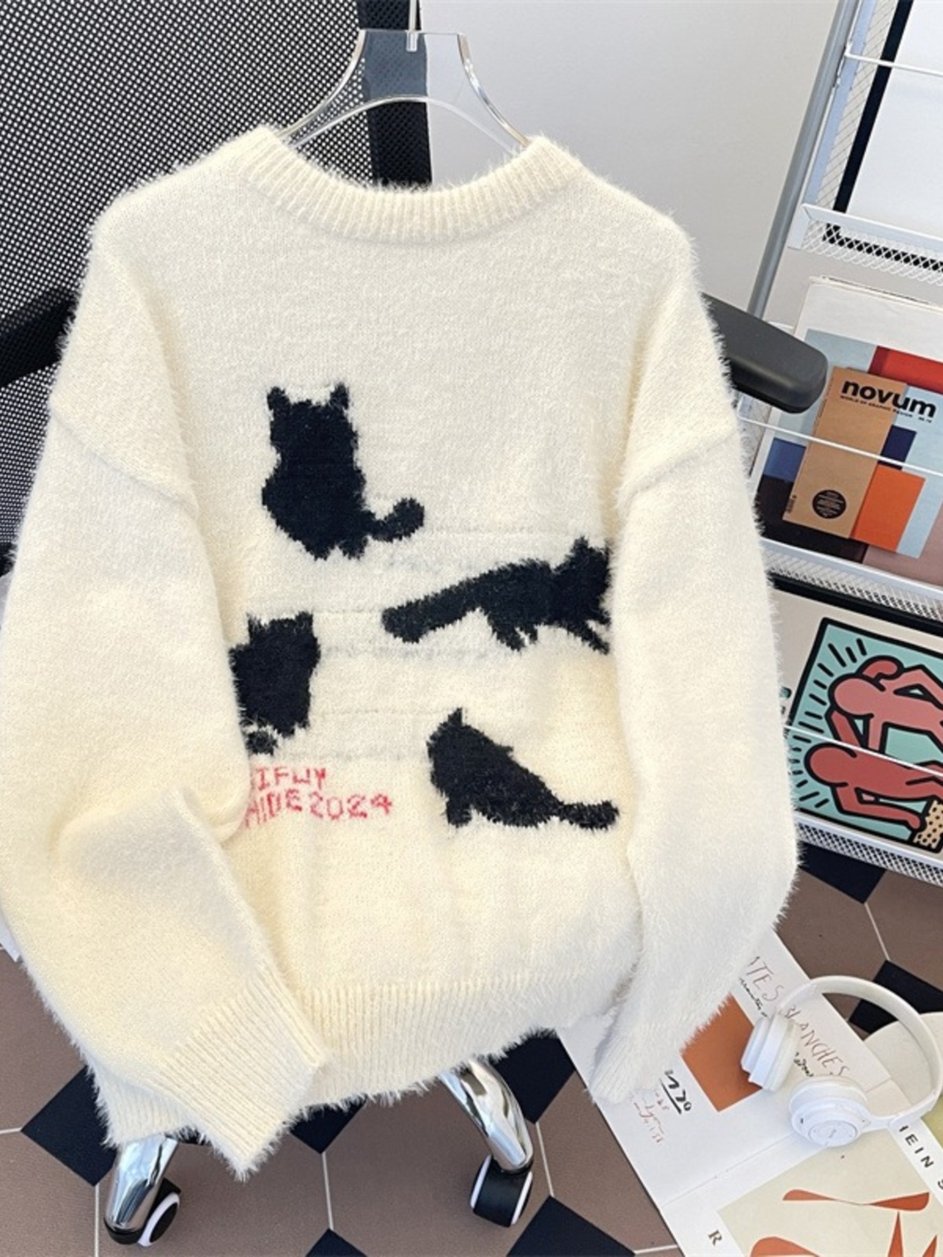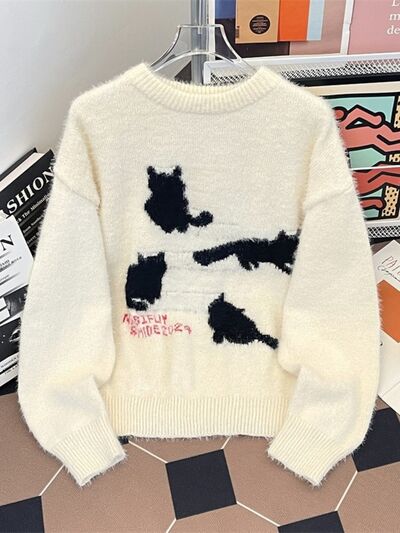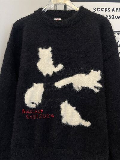 Men's Cute Cat Fuzzy Knit Pullover
