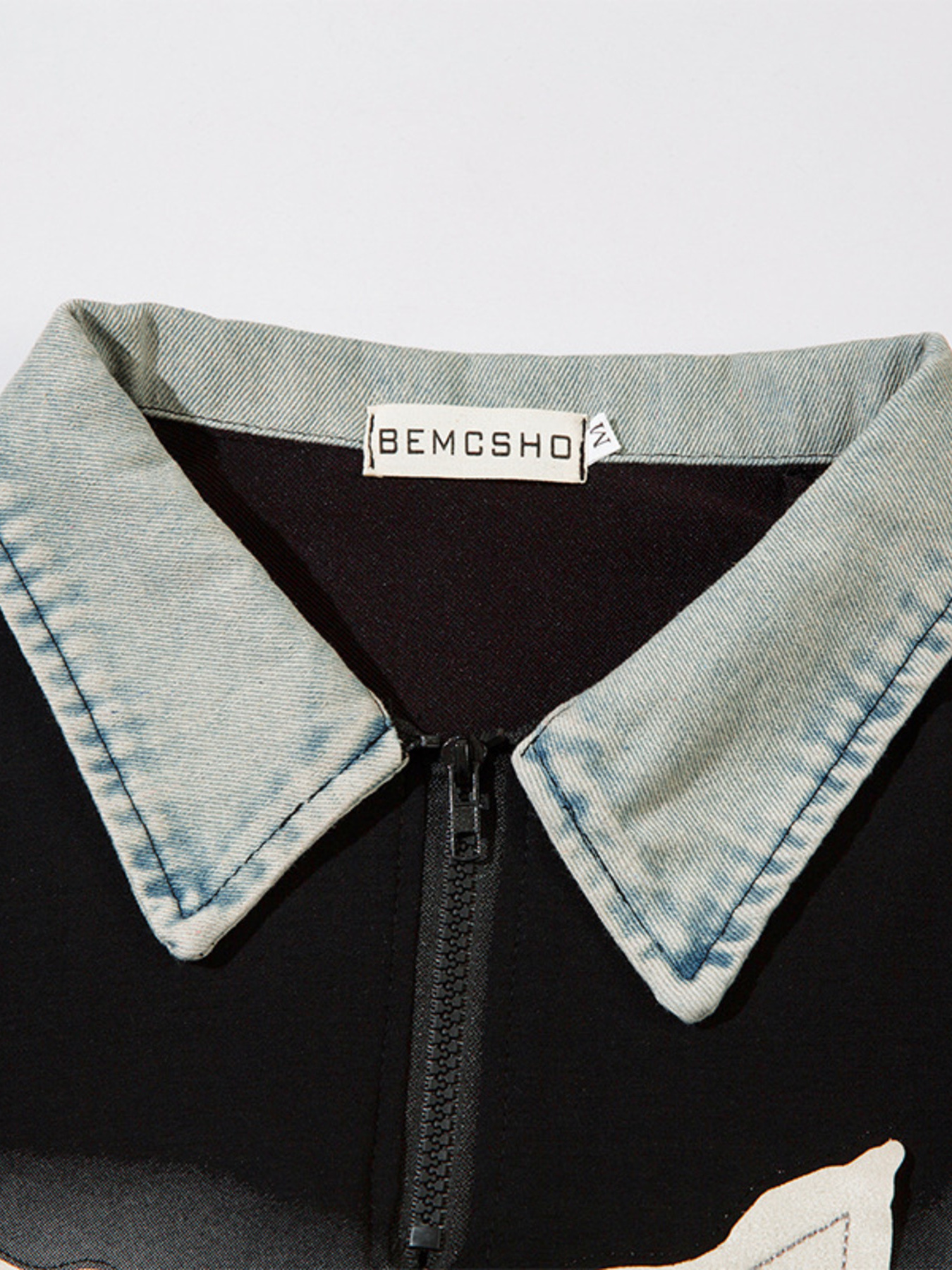 Men's Denim Collar Star Patch Short Sleeve Polo