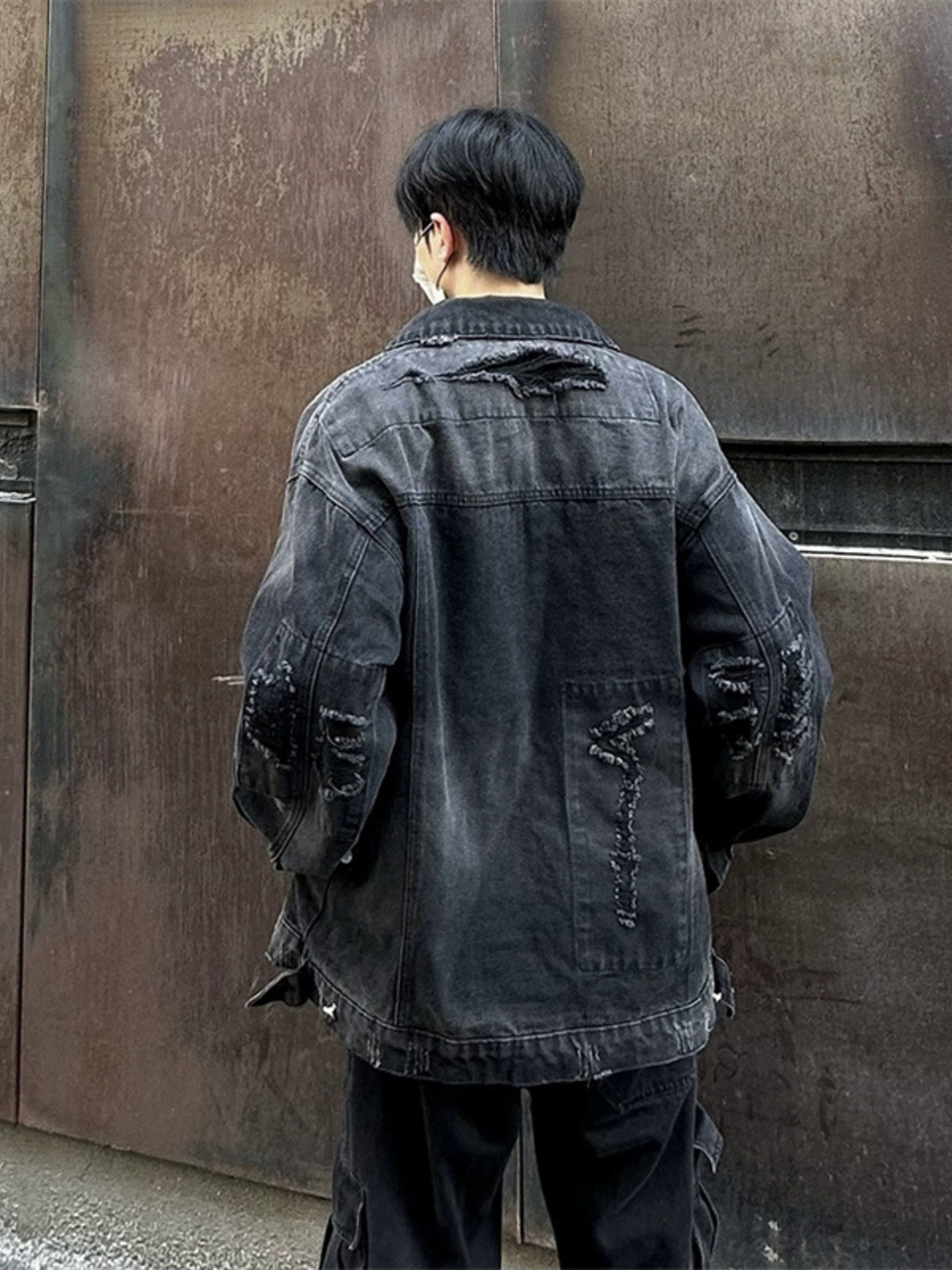 Men's Distressed Button Up Denim Jacket