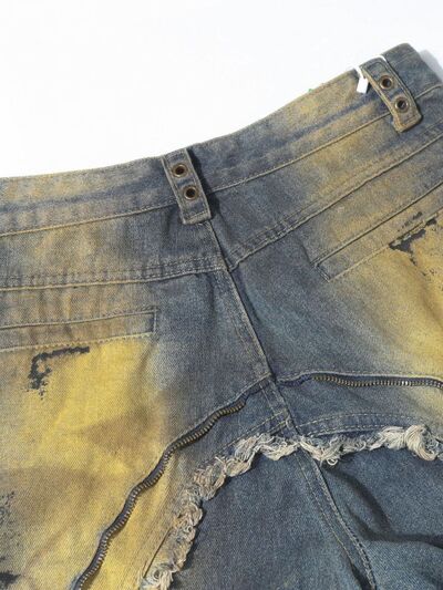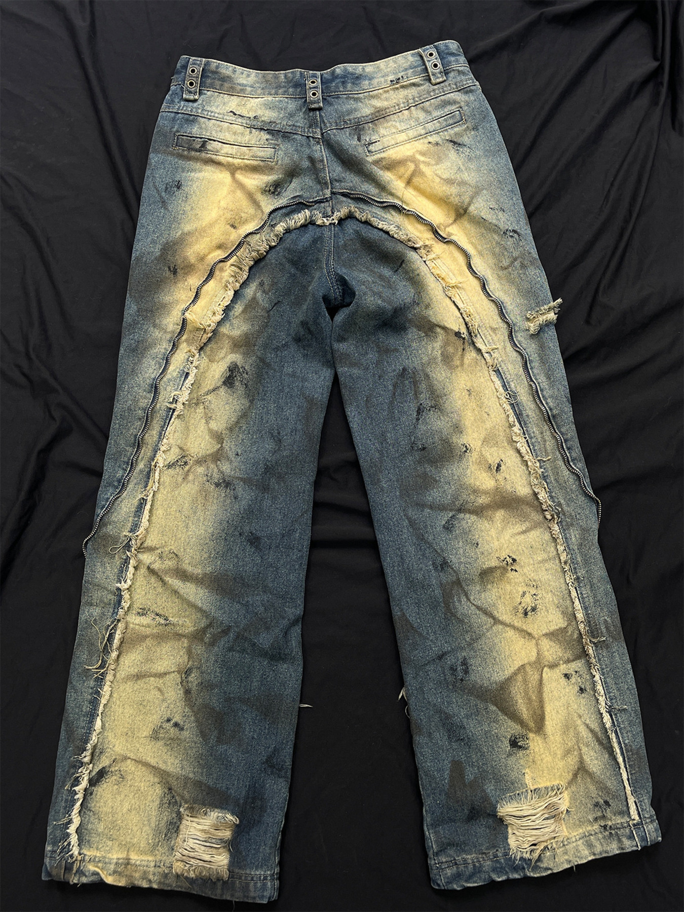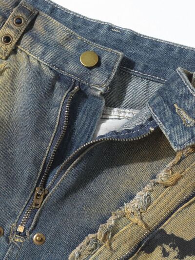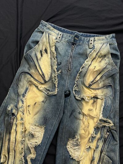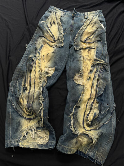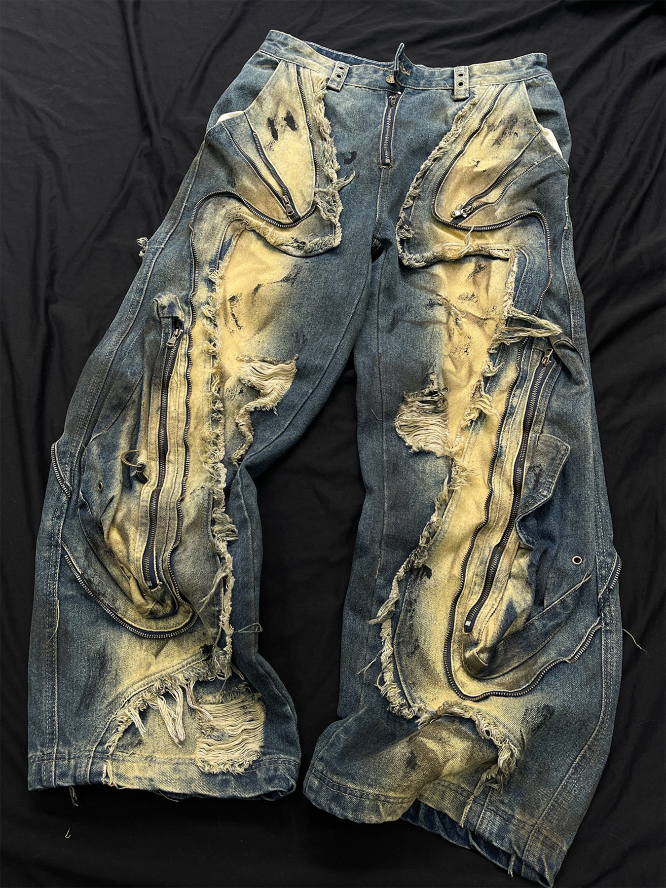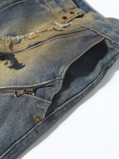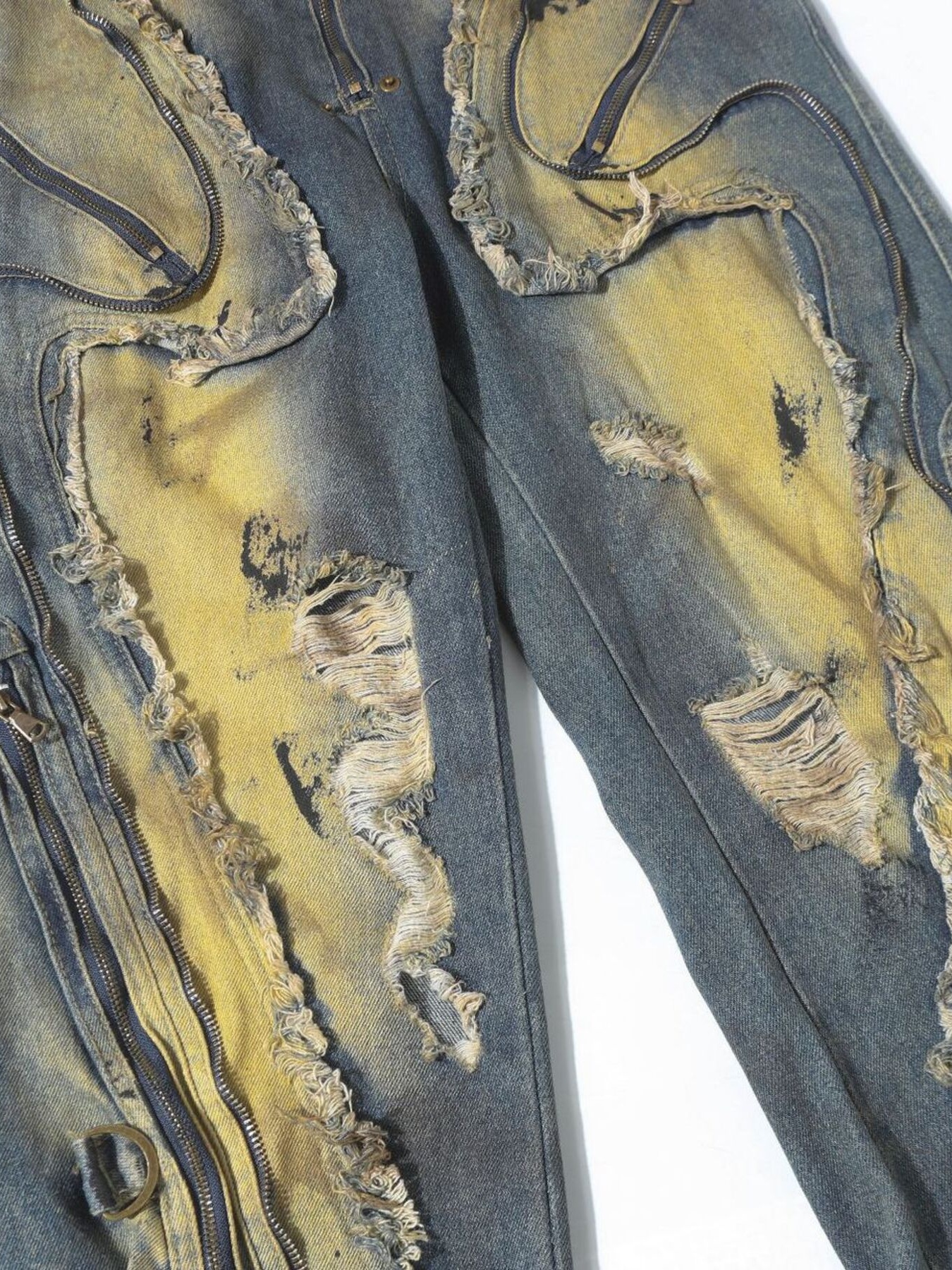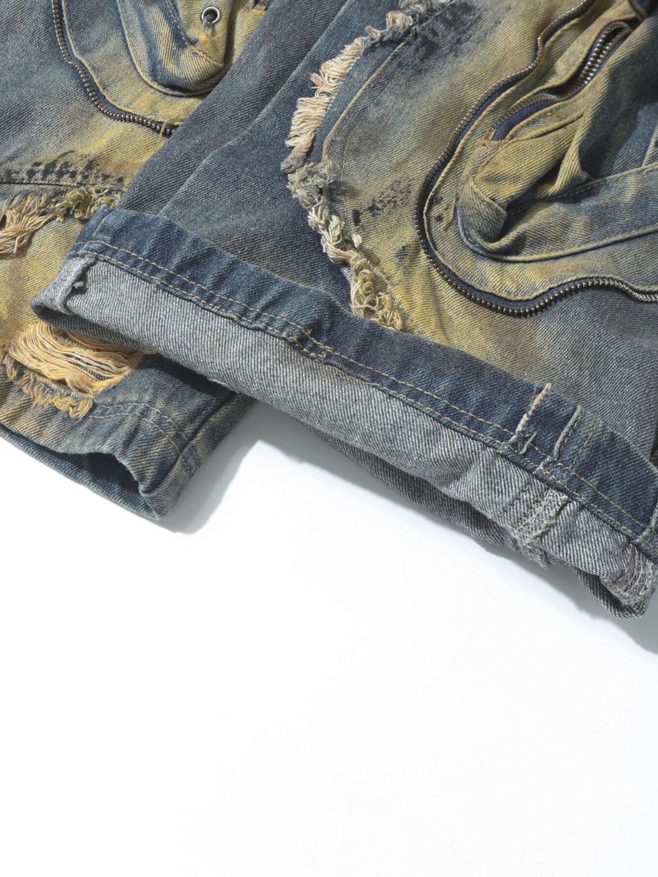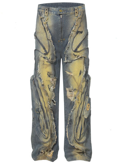 Men's Distressed Cargo Jeans with Artistic Ripped Design