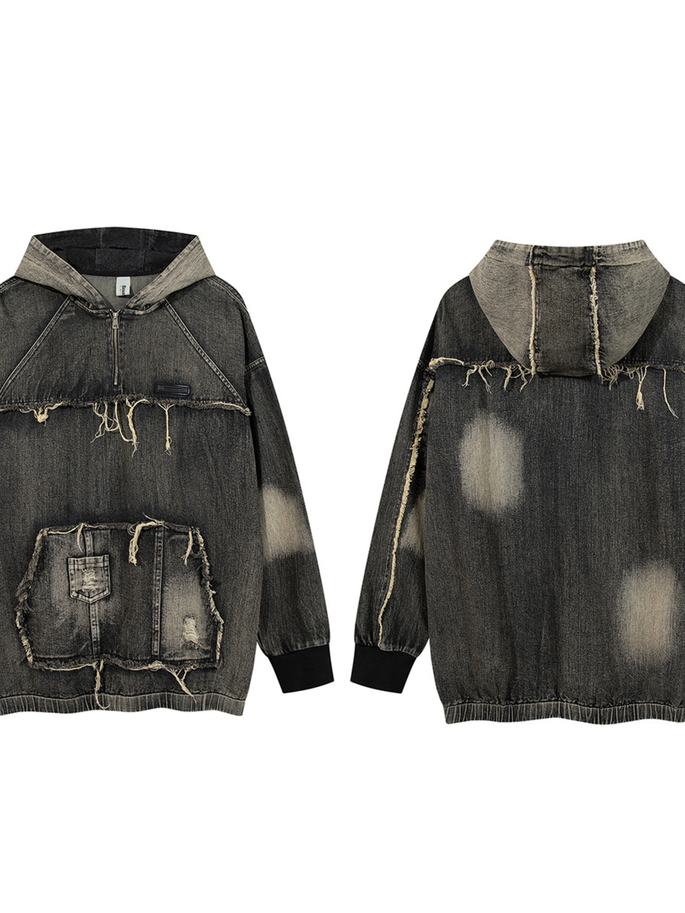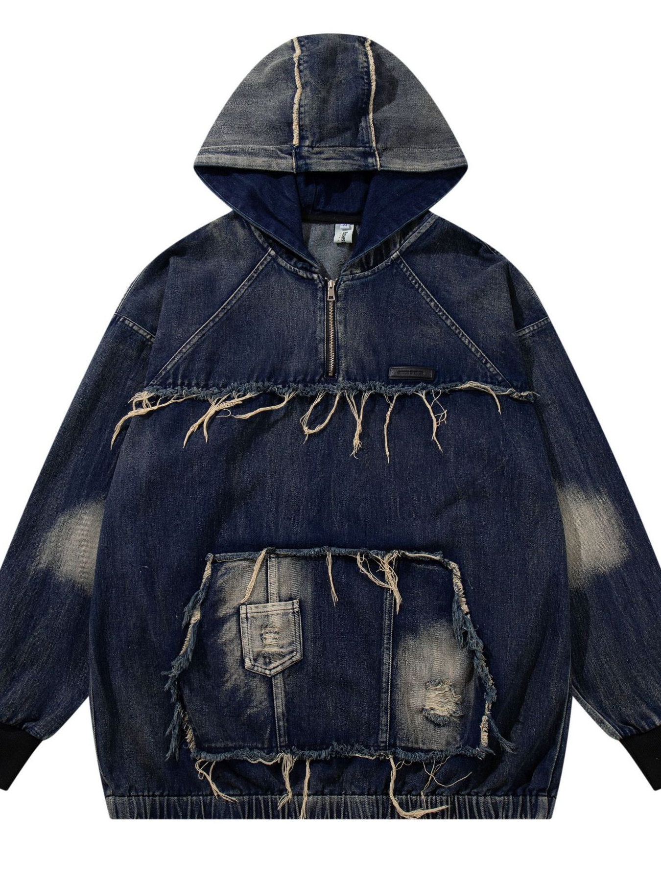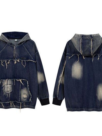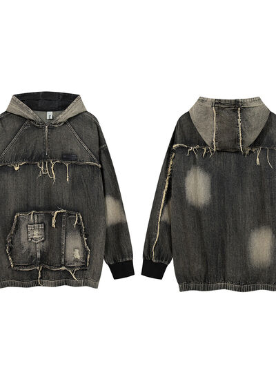 - Features:Oversized,Distressed,Exposed seam,Pocketed,Zipper