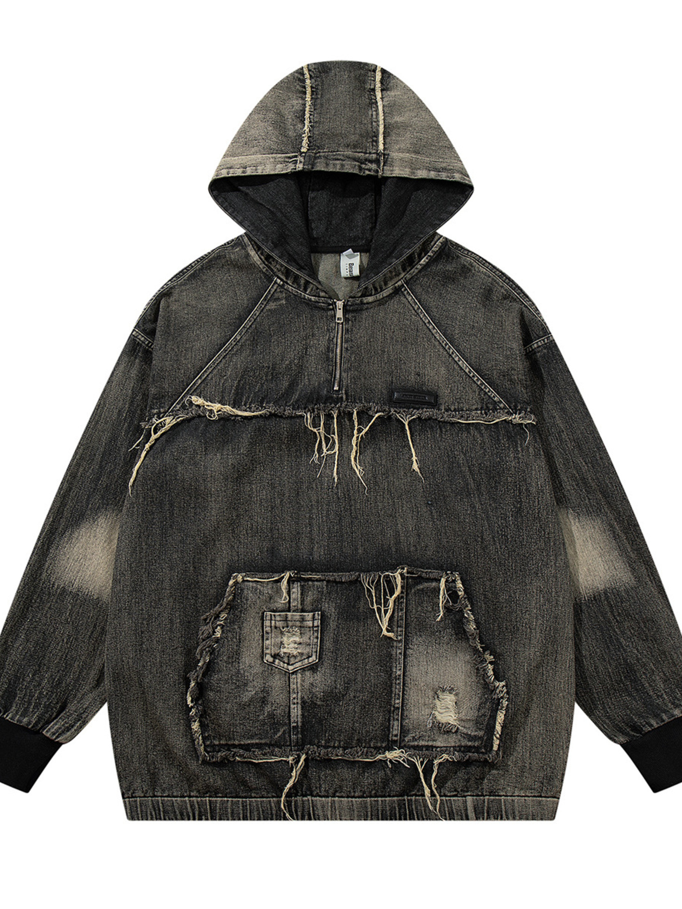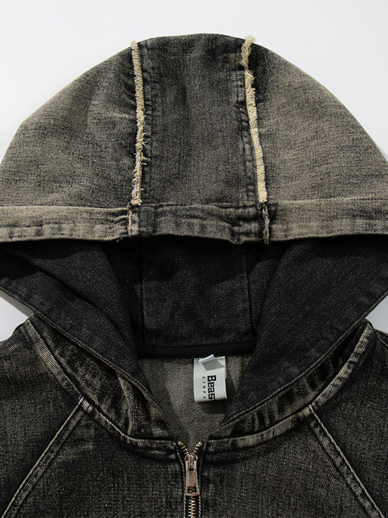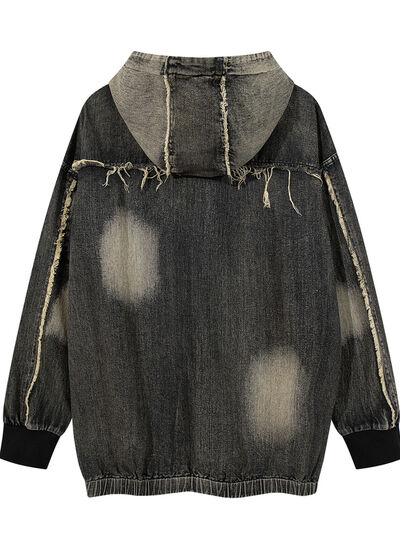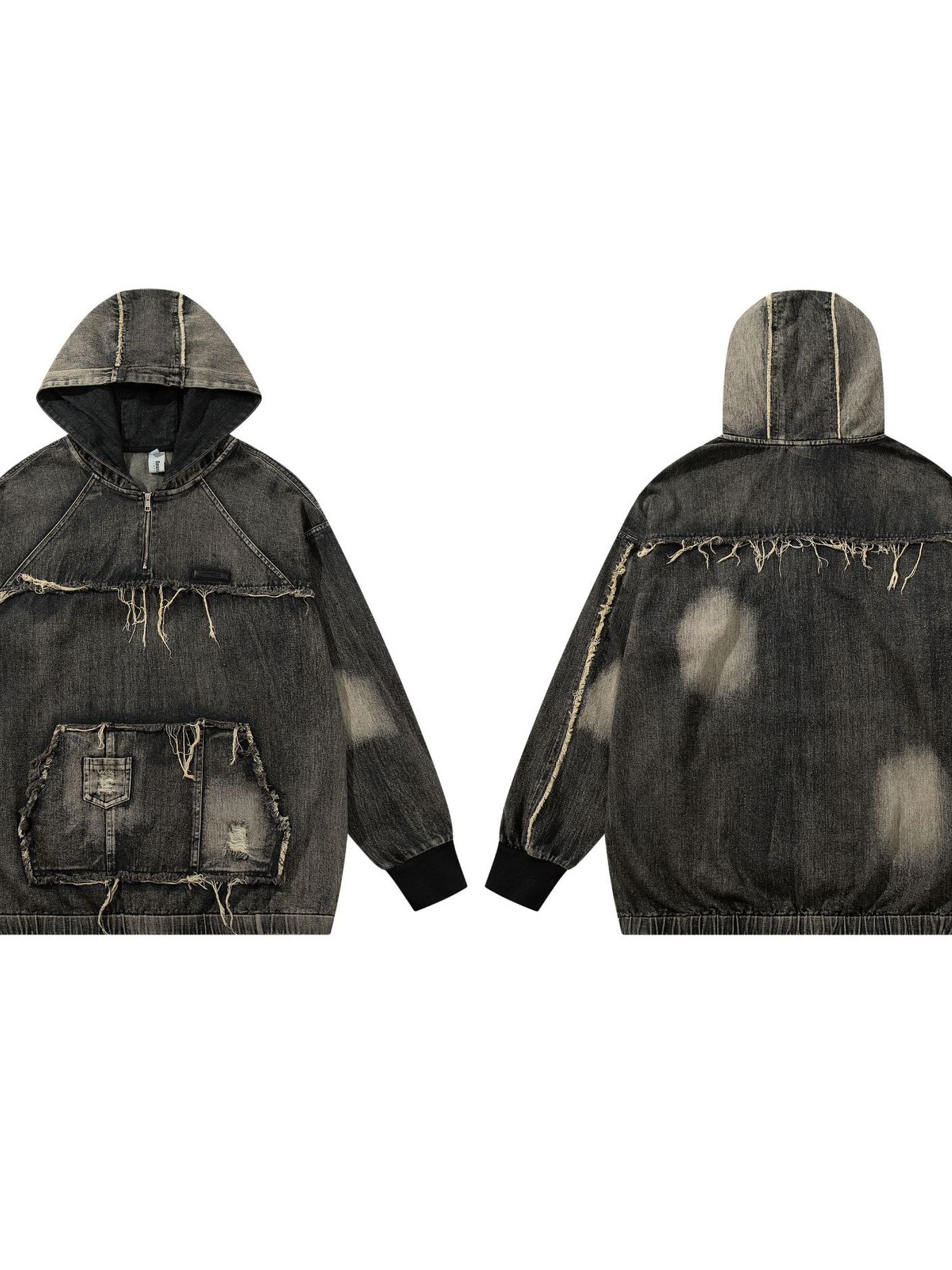 - Features:Oversized,Distressed,Exposed seam,Pocketed,Zipper