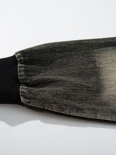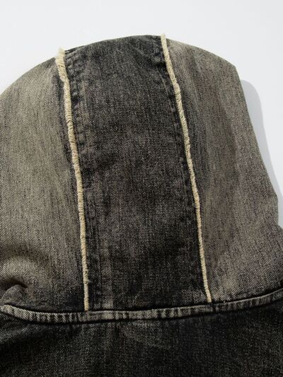 Men's Distressed Denim Patchwork Oversized Hoodie with Frayed Details