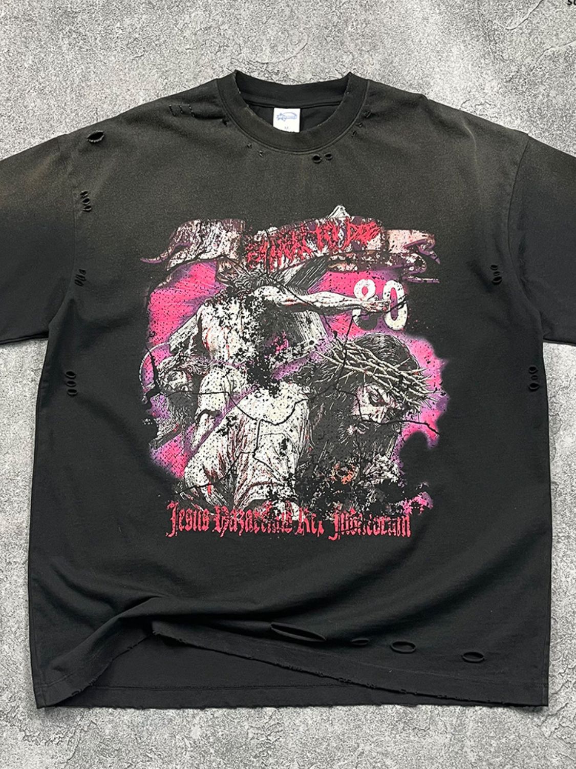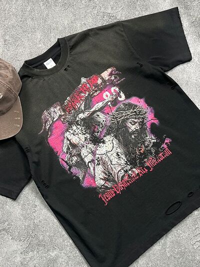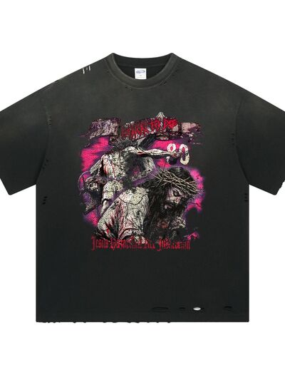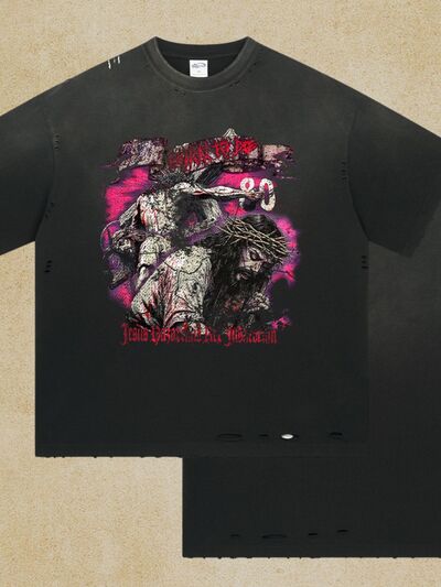 Men's Distressed Detail Round Neck Graphic T-Shirt
