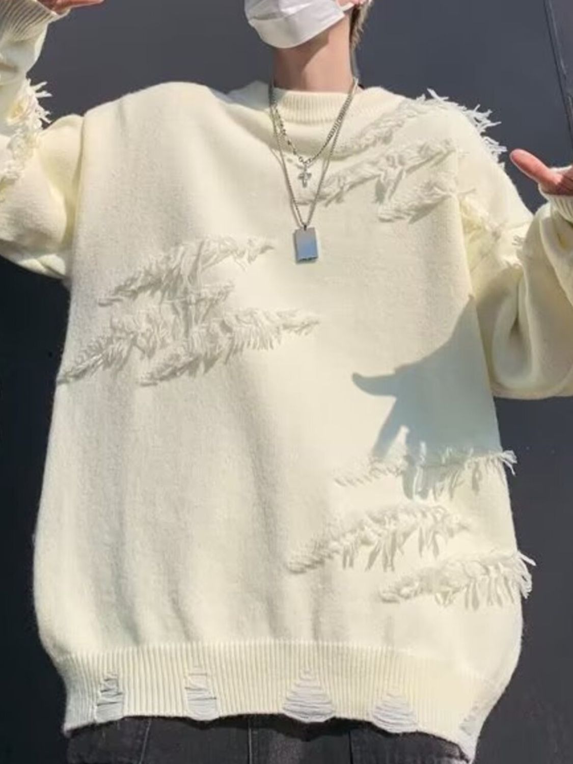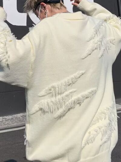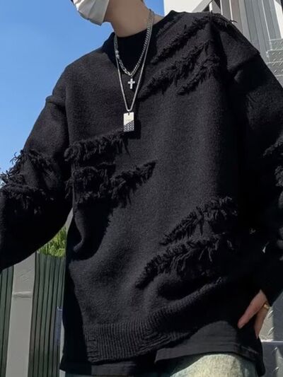 Men's Distressed Fringe Long Sleeve Sweater