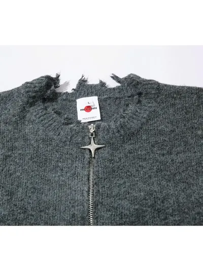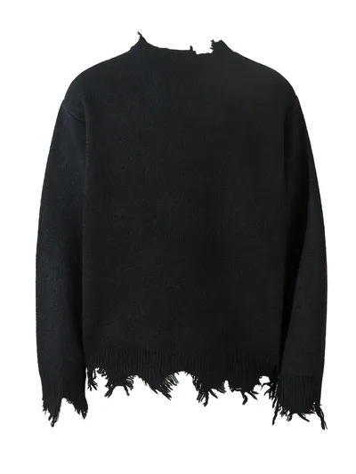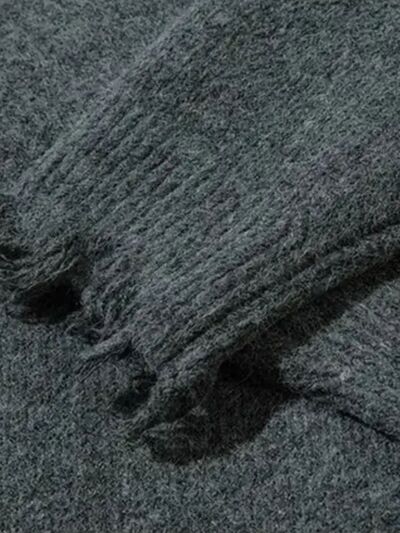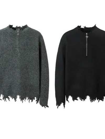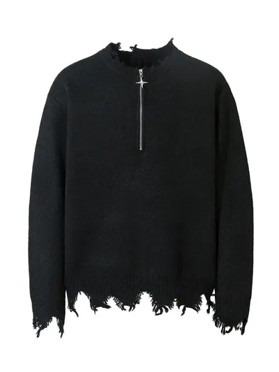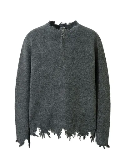 Men's Distressed Hem Half-Zip Sweater