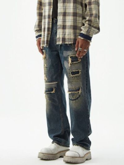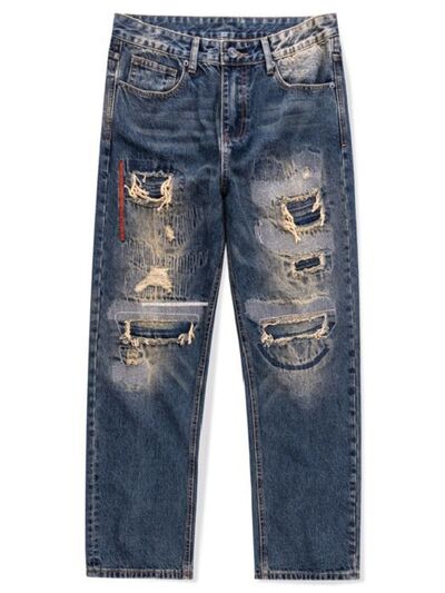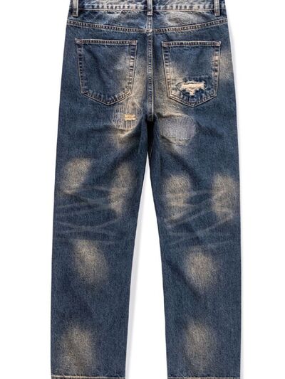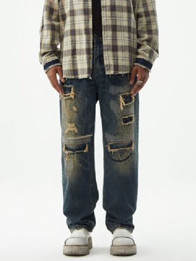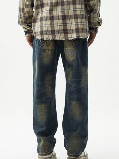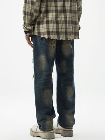 Men's Distressed Wash Relaxed Fit Wide Leg Jeans