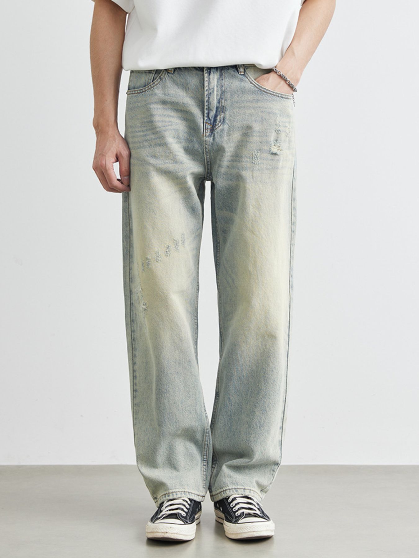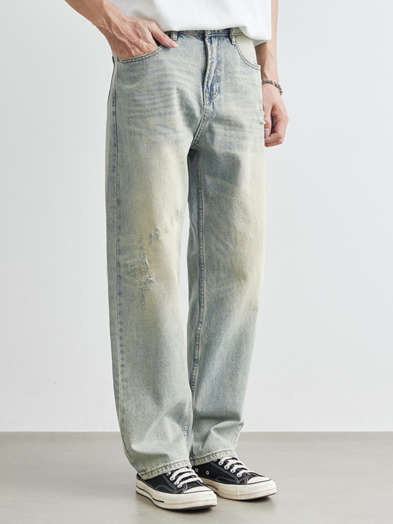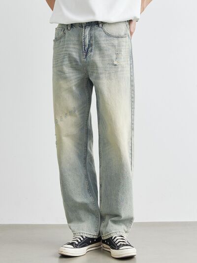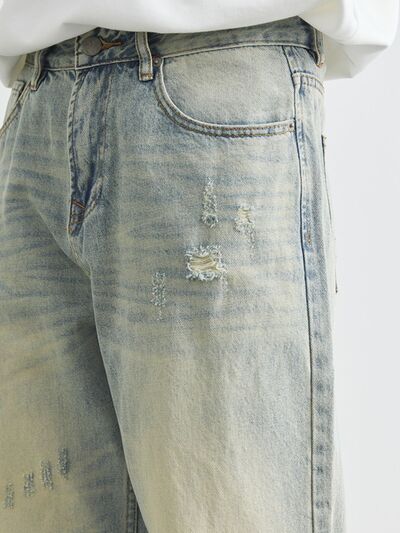 Men's Distressed Wash Wide Leg Jeans