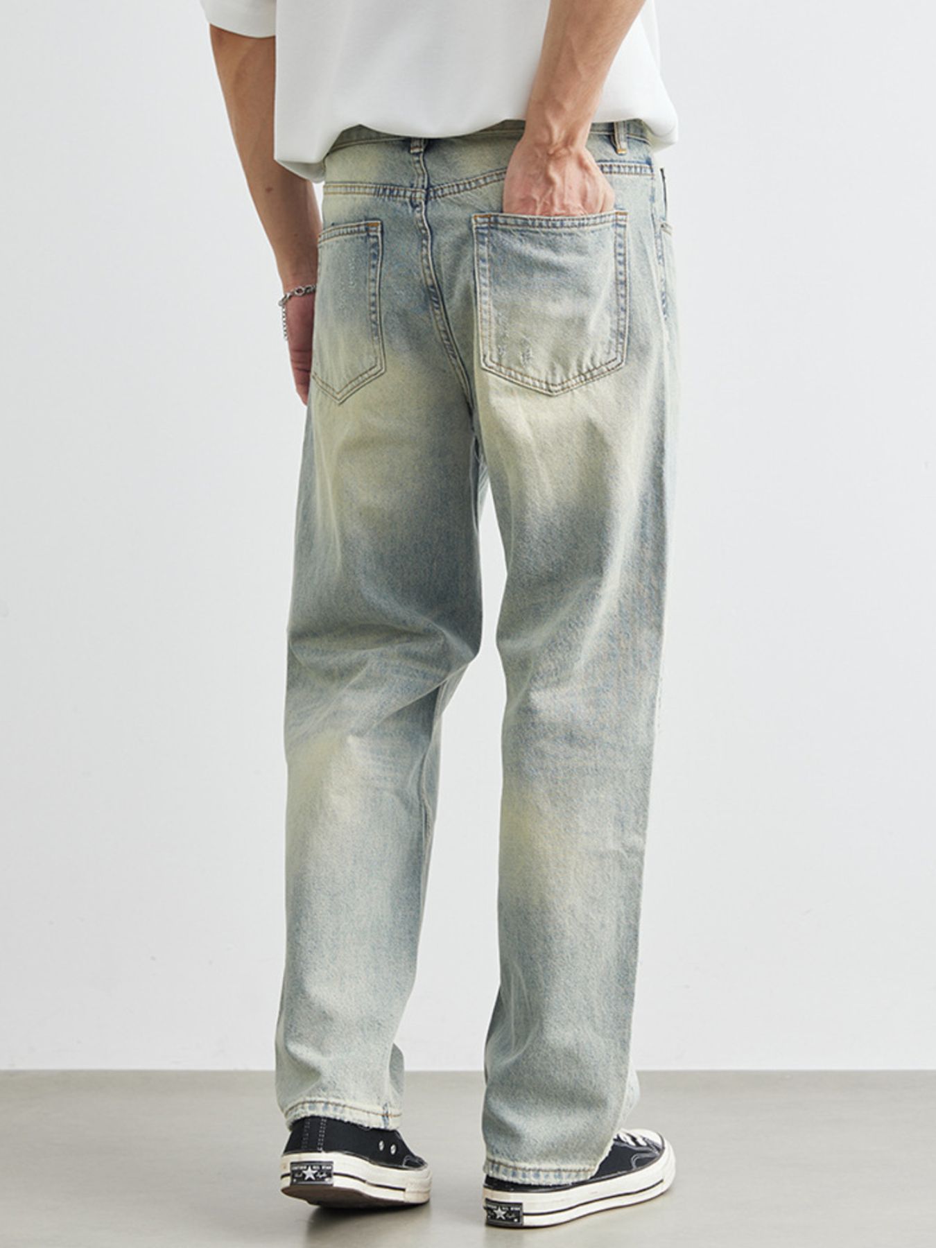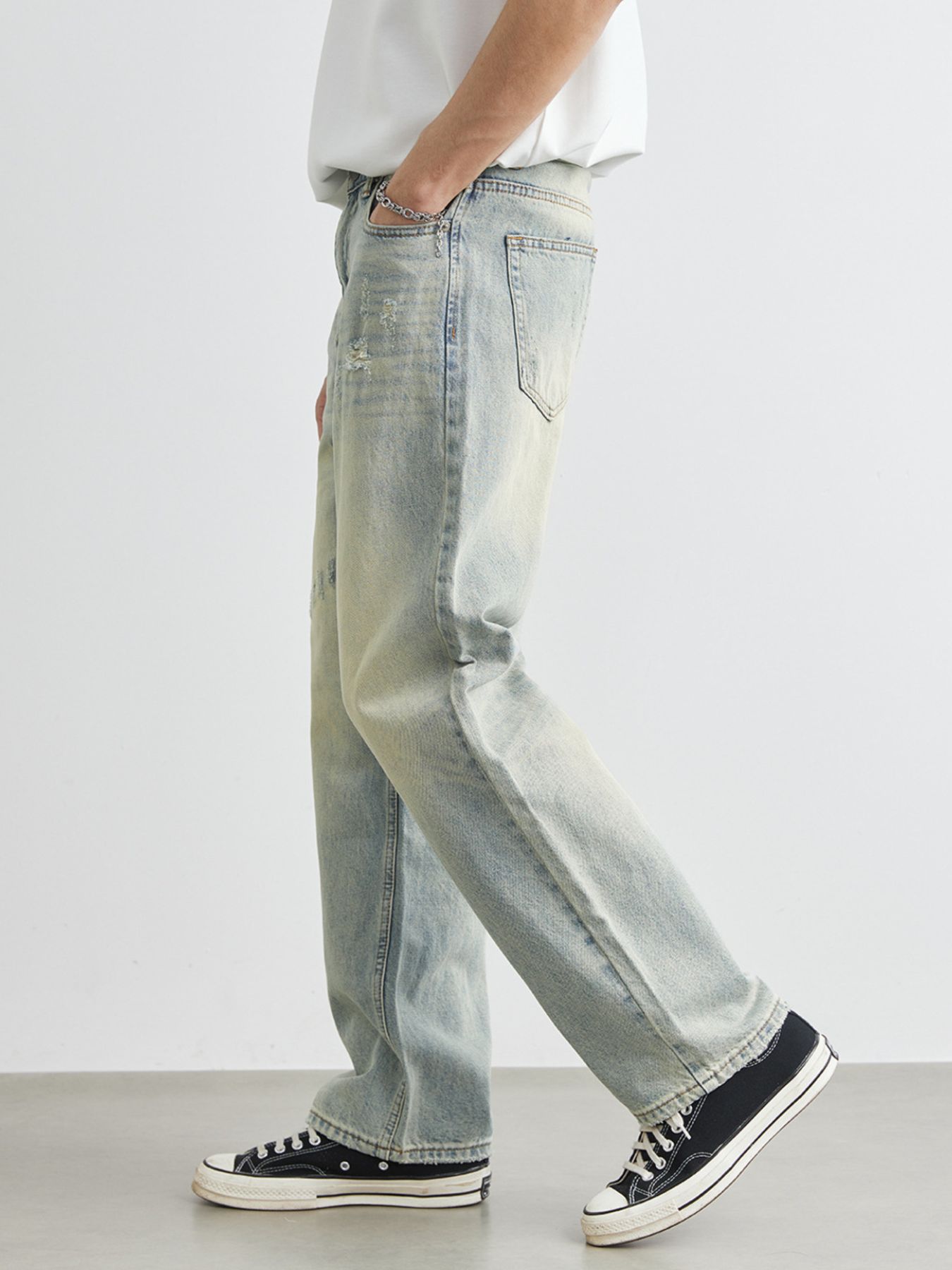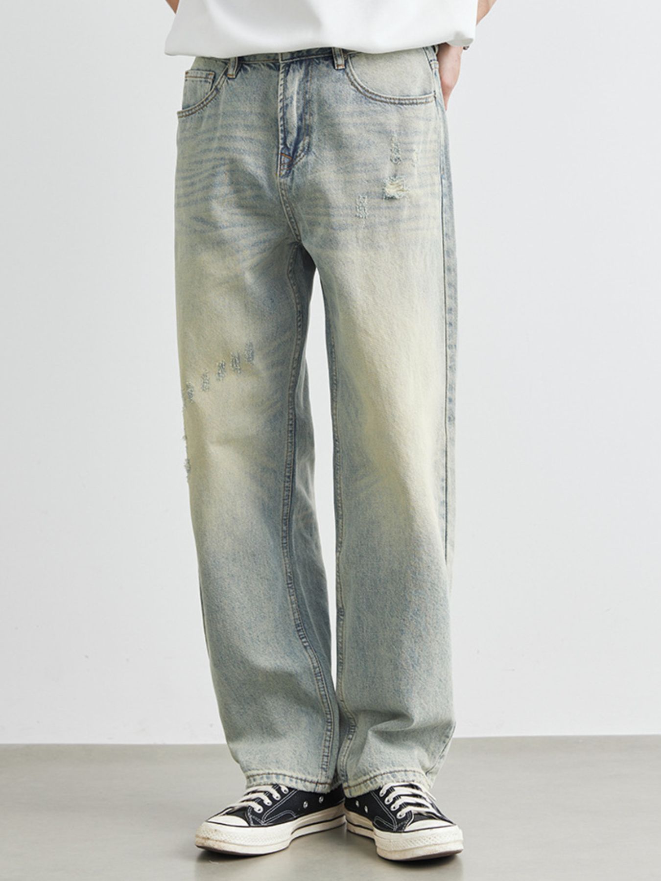 Men's Distressed Wash Wide Leg Jeans