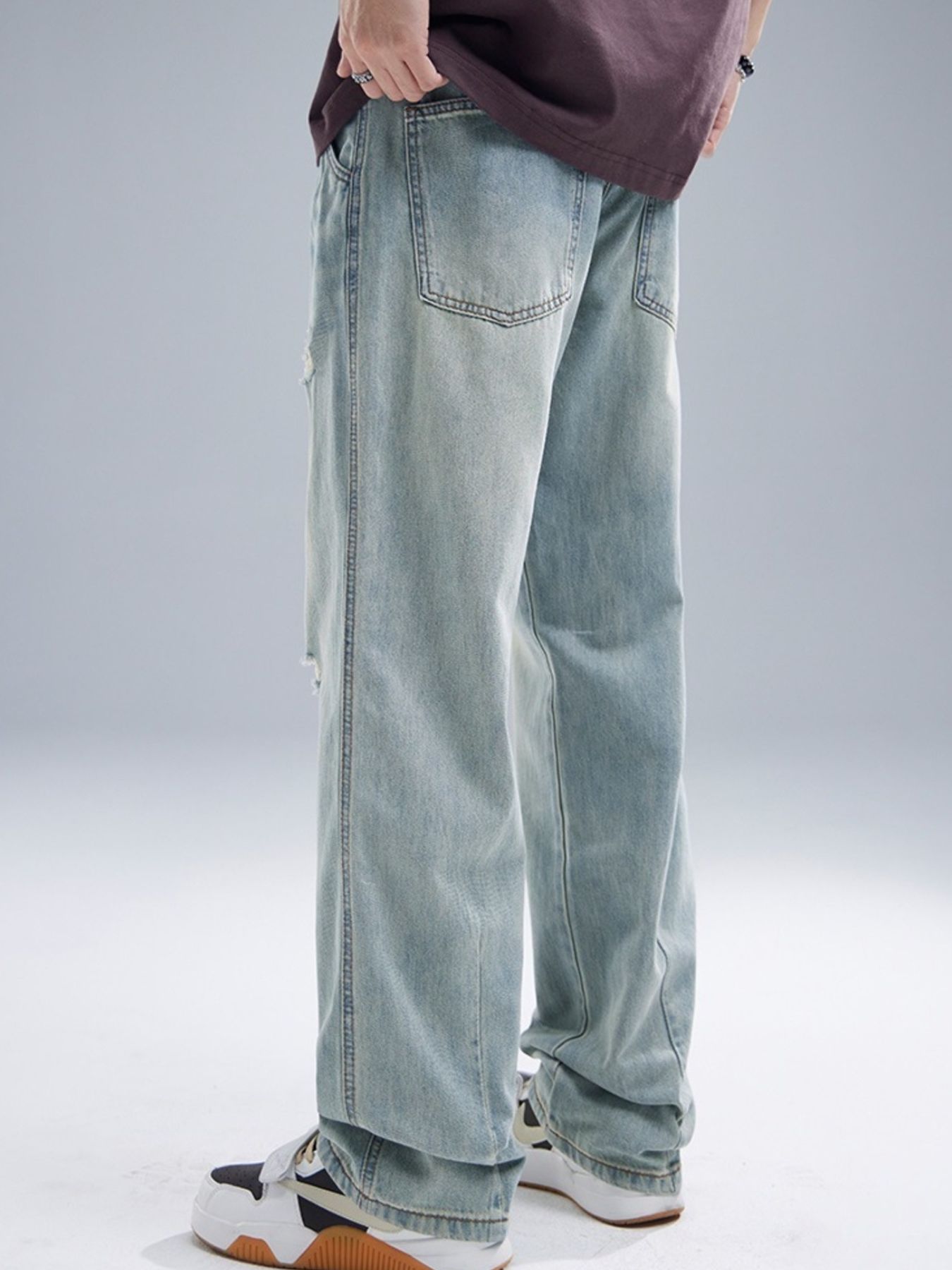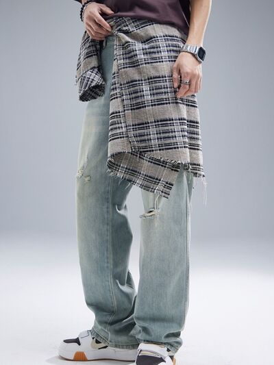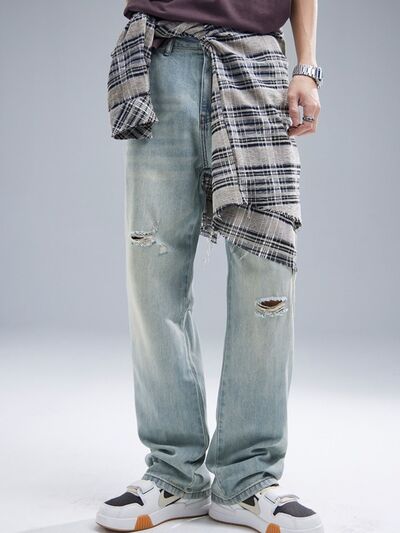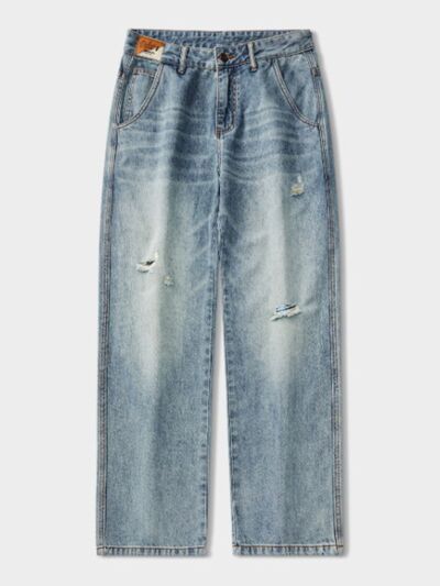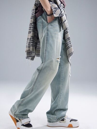 Men's Distressed Washed Wide Leg Jeans