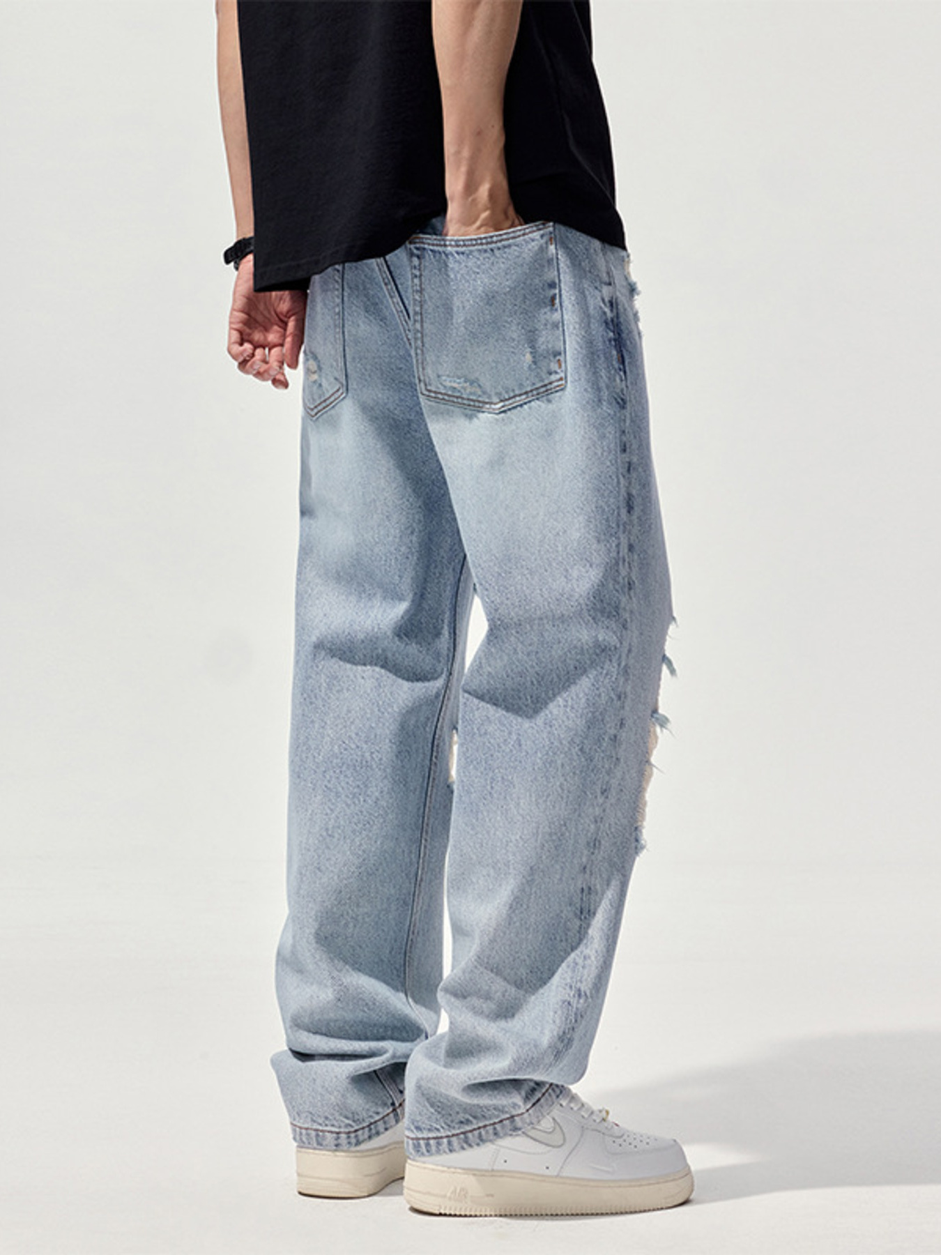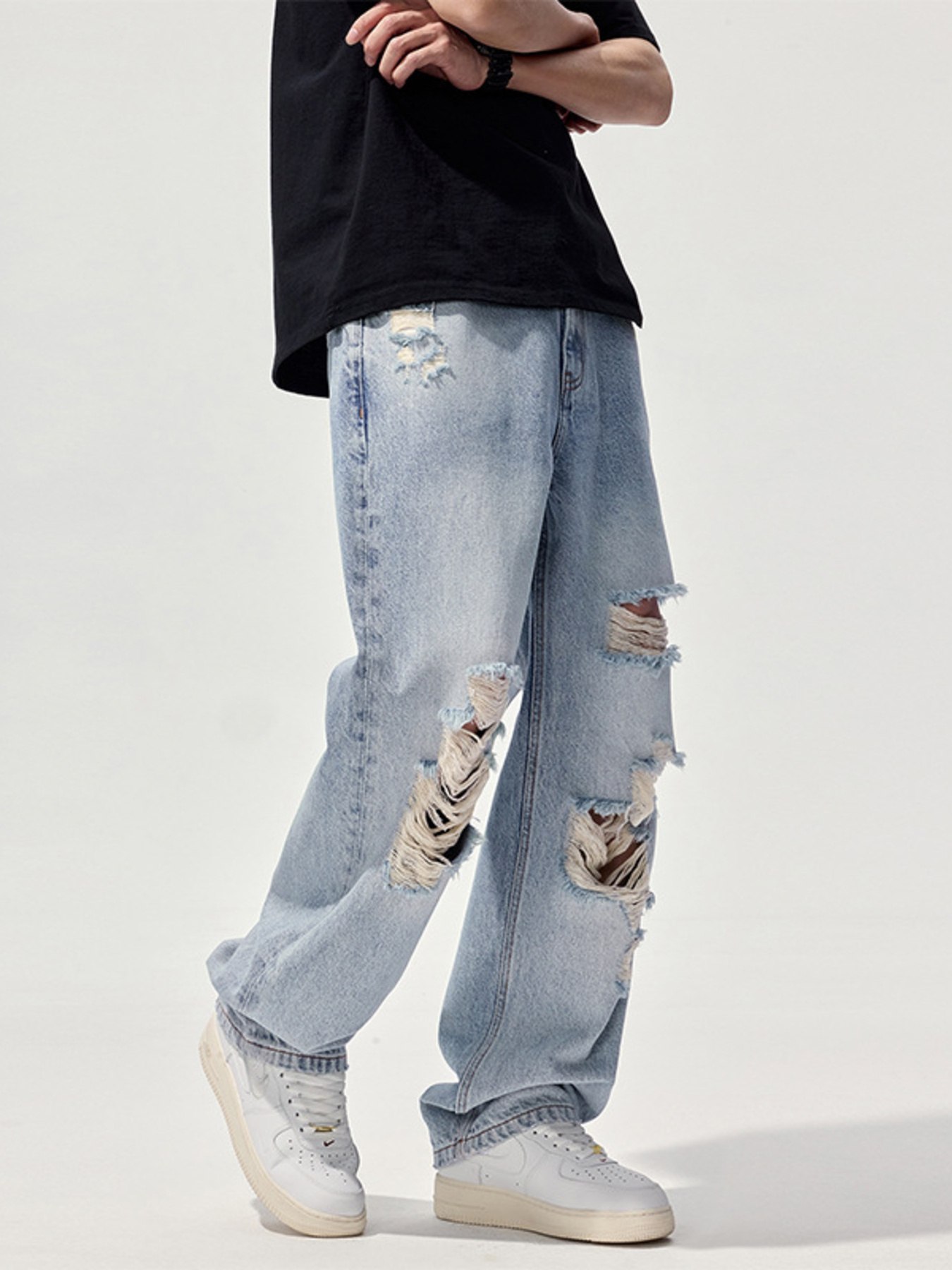 Men's Distressed Washed Wide Leg Jeans