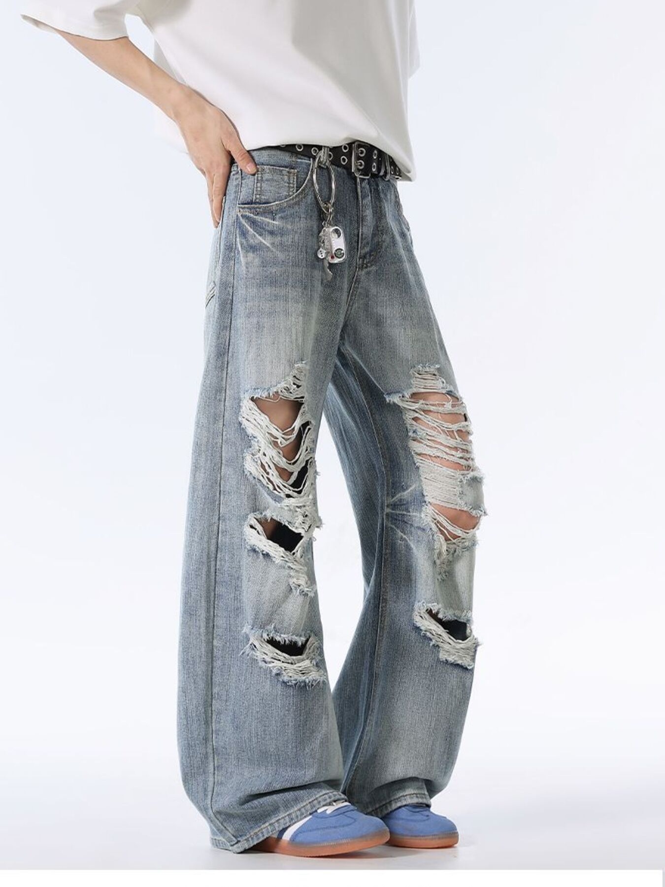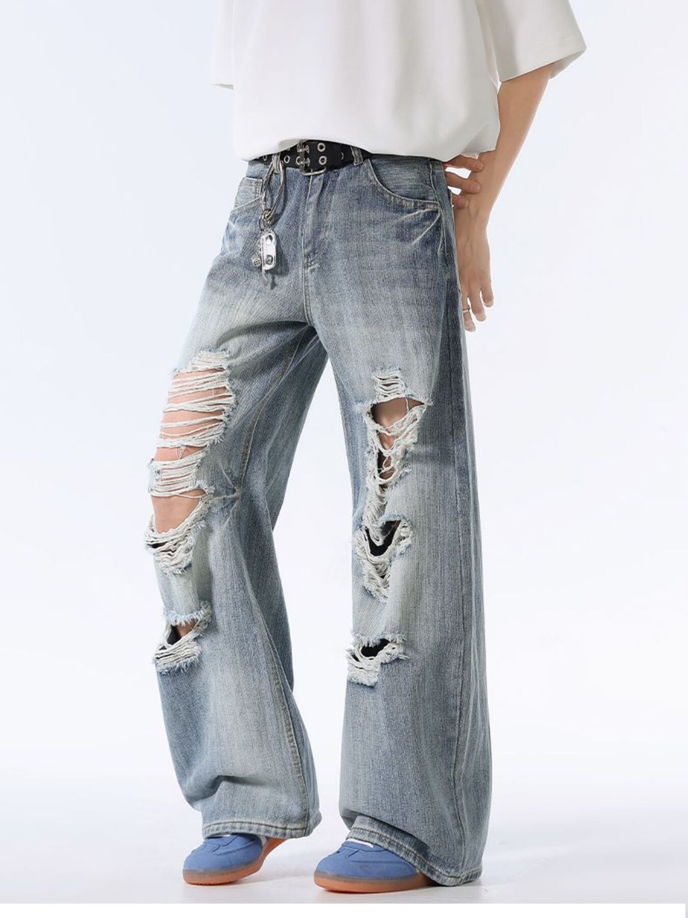 Men's Distressed Wide Leg Baggy Jeans