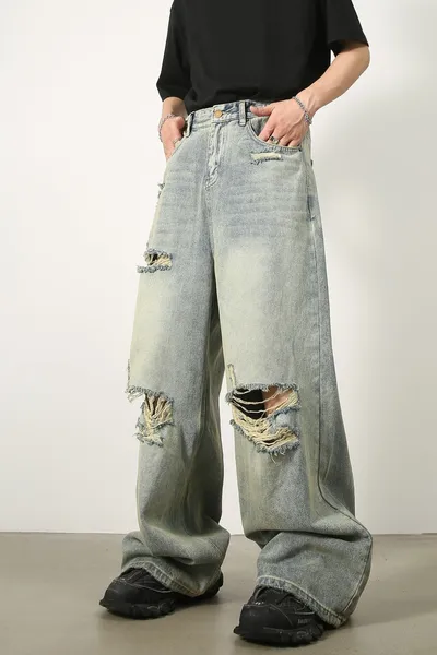 Men's Distressed Wide Leg Jeans