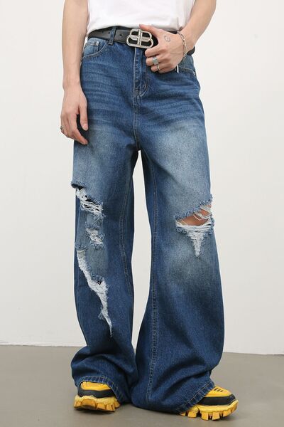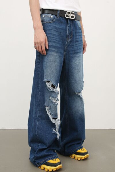 Men's Distressed Wide Leg Jeans