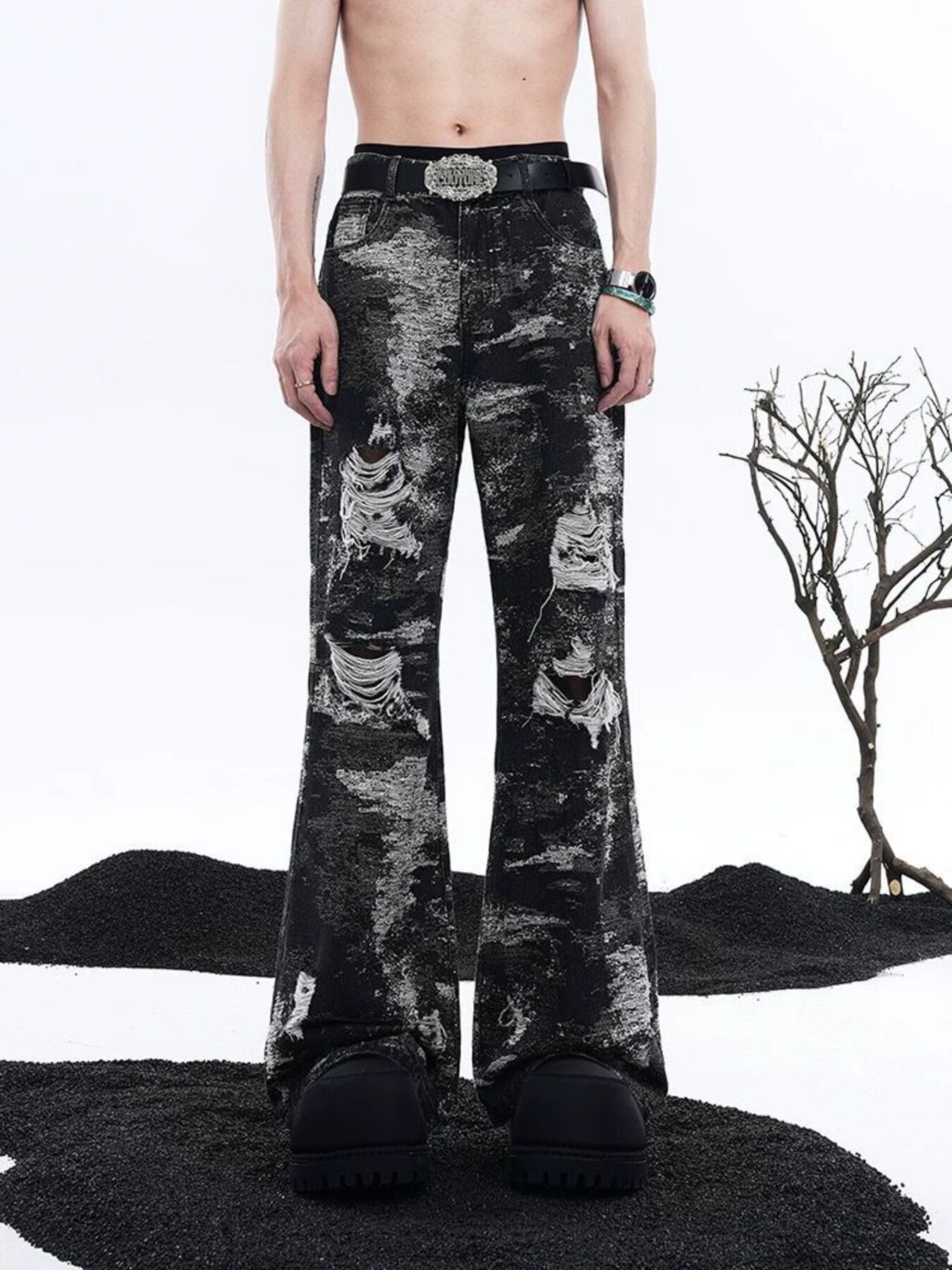 Men's Distressed Wide Leg Jeans