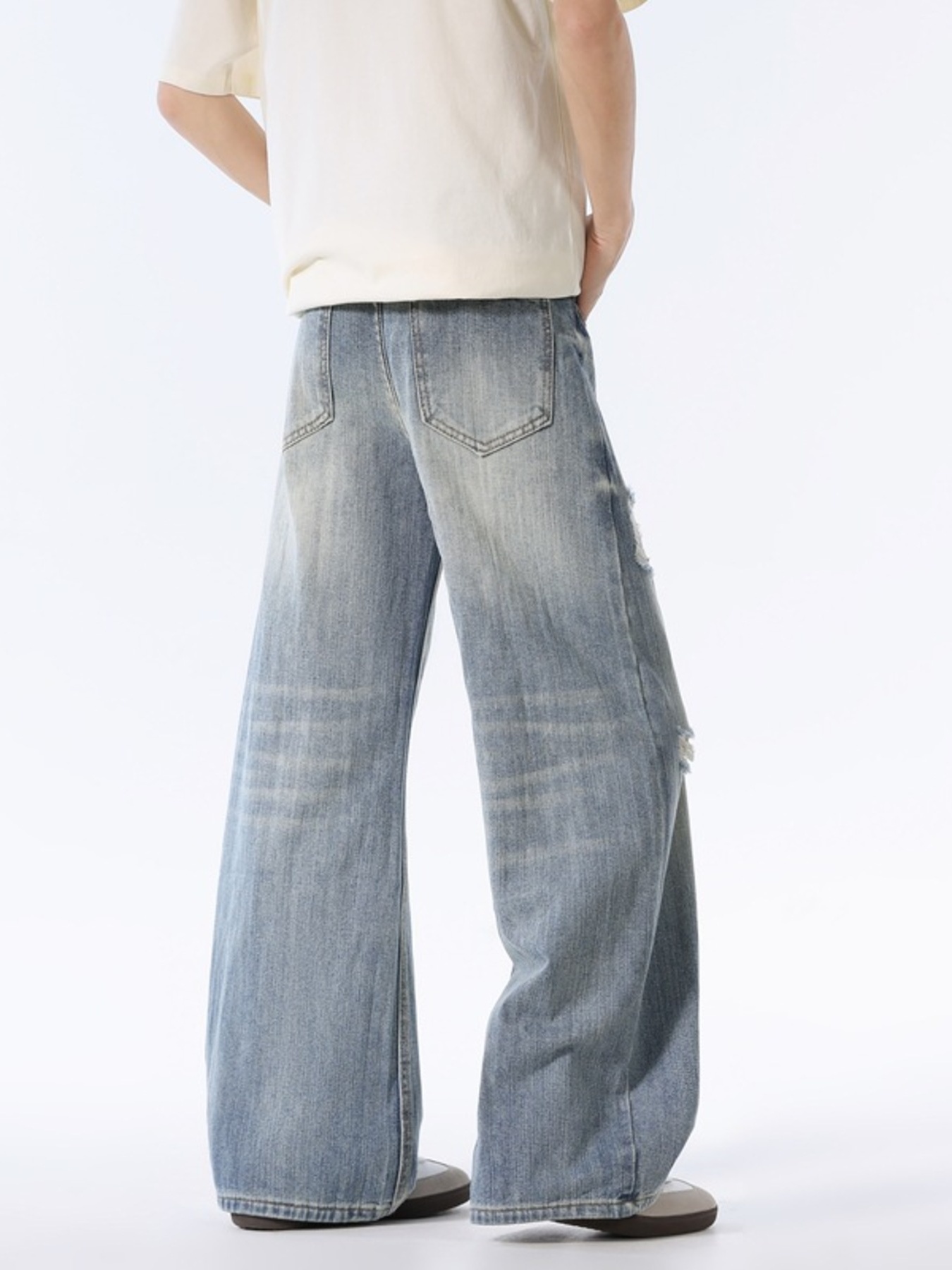 Men's Distressed Wide Leg Jeans