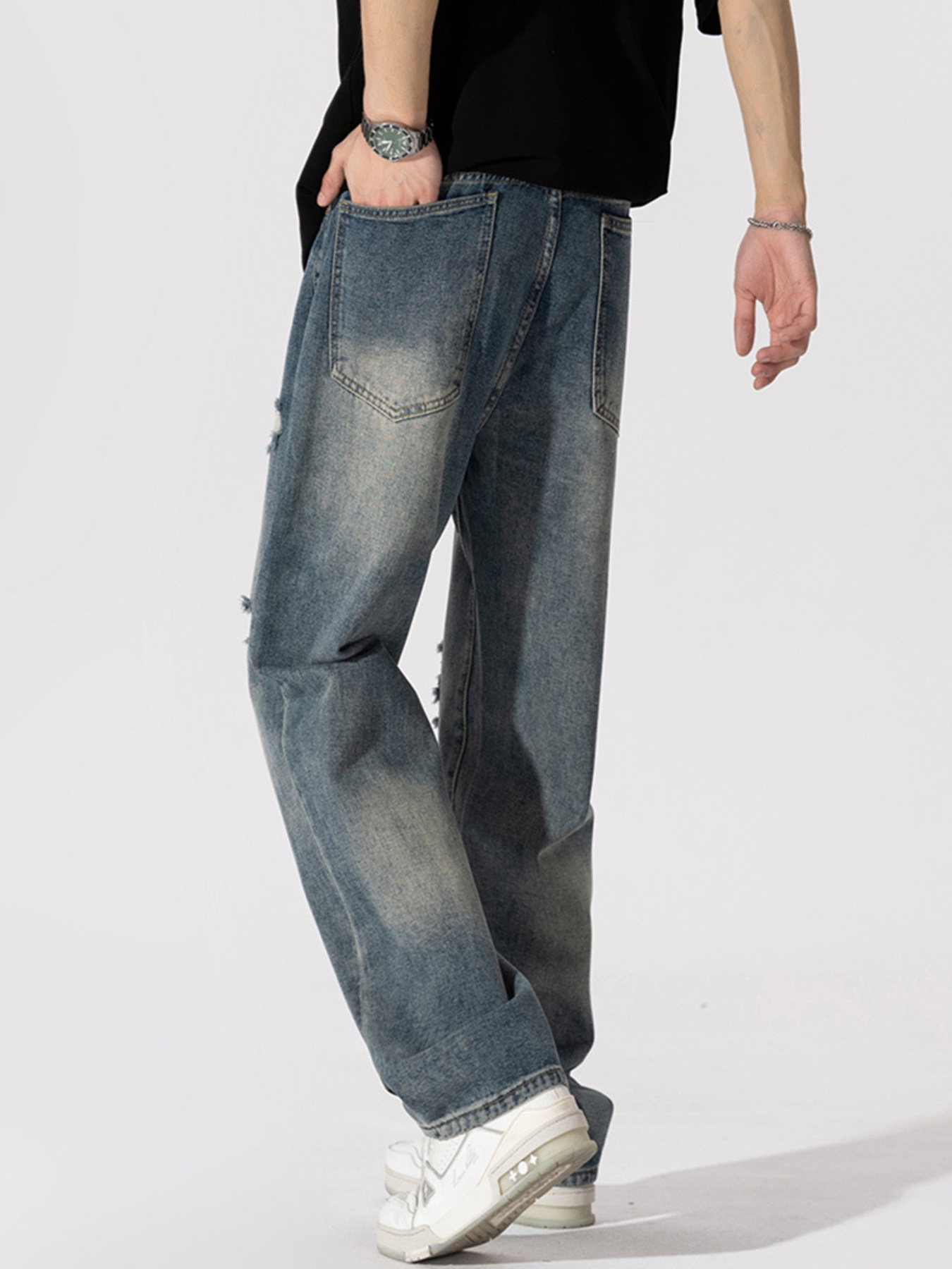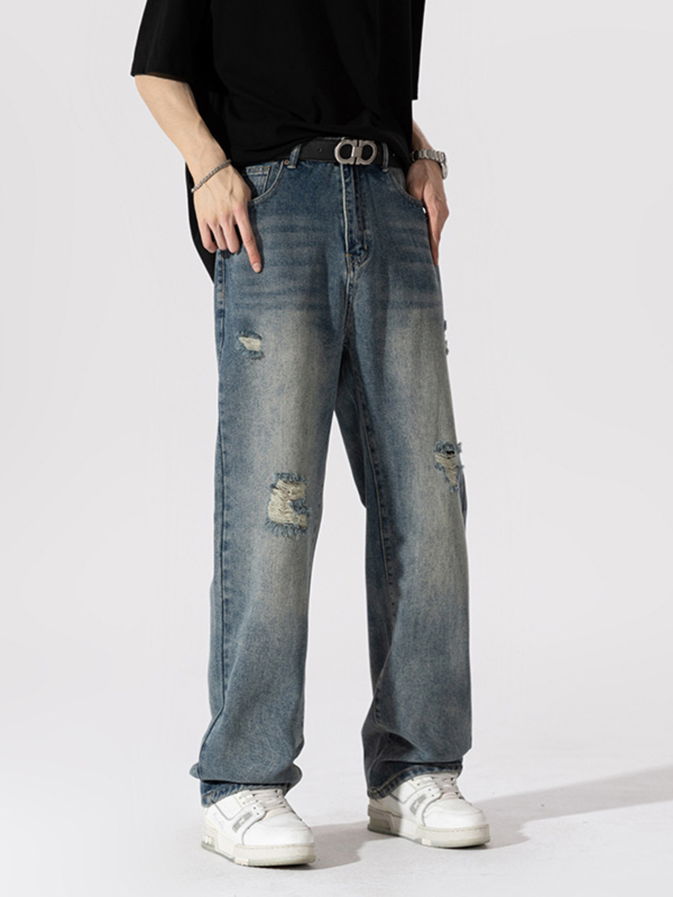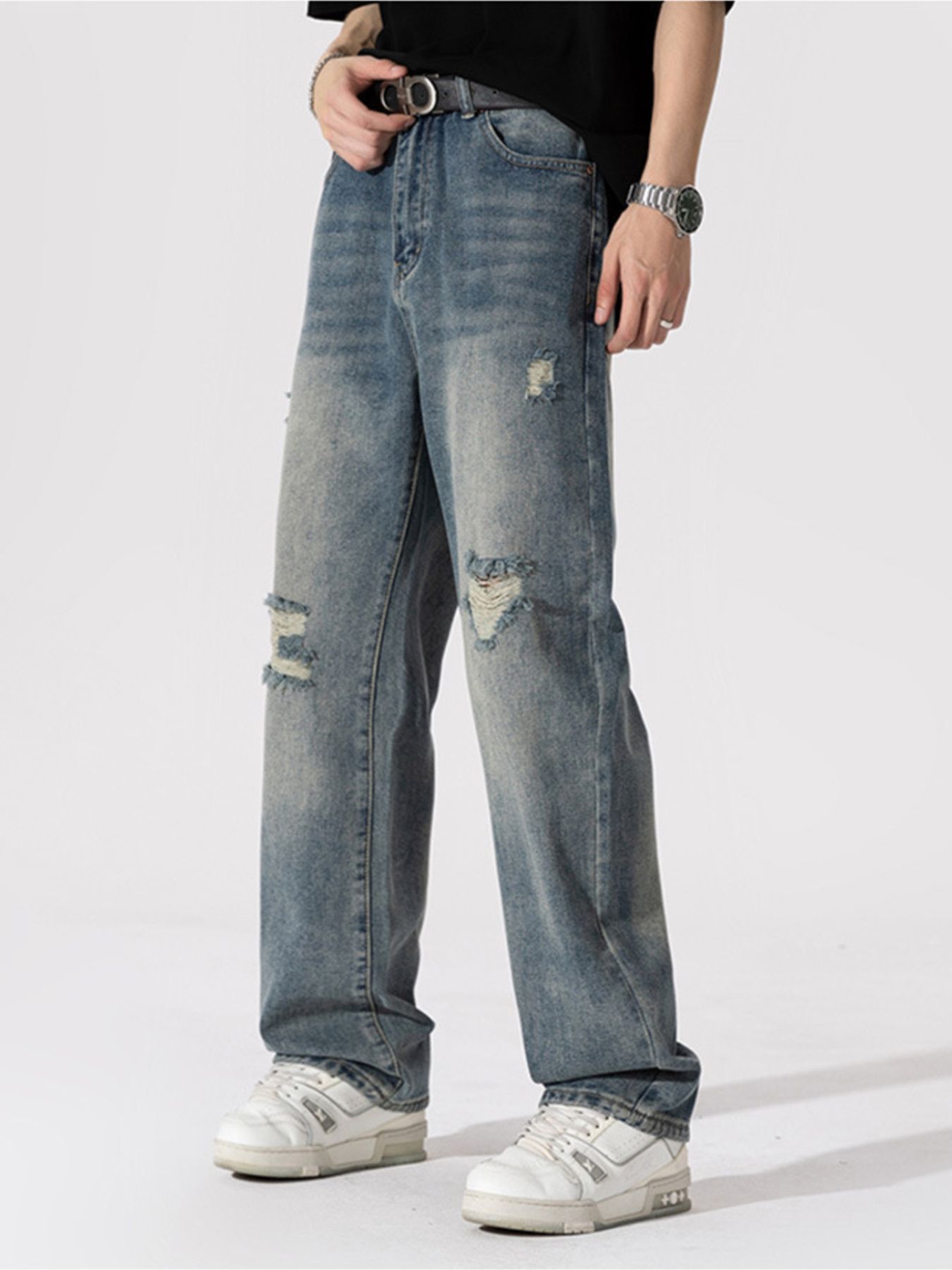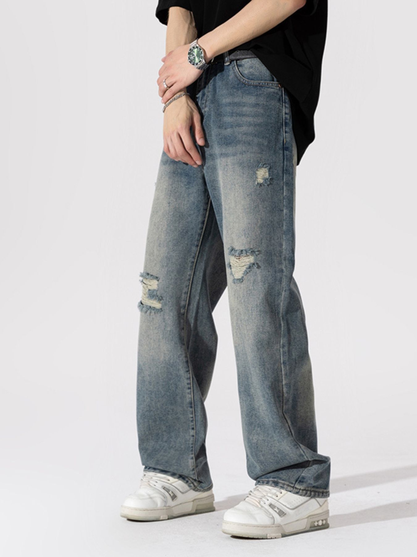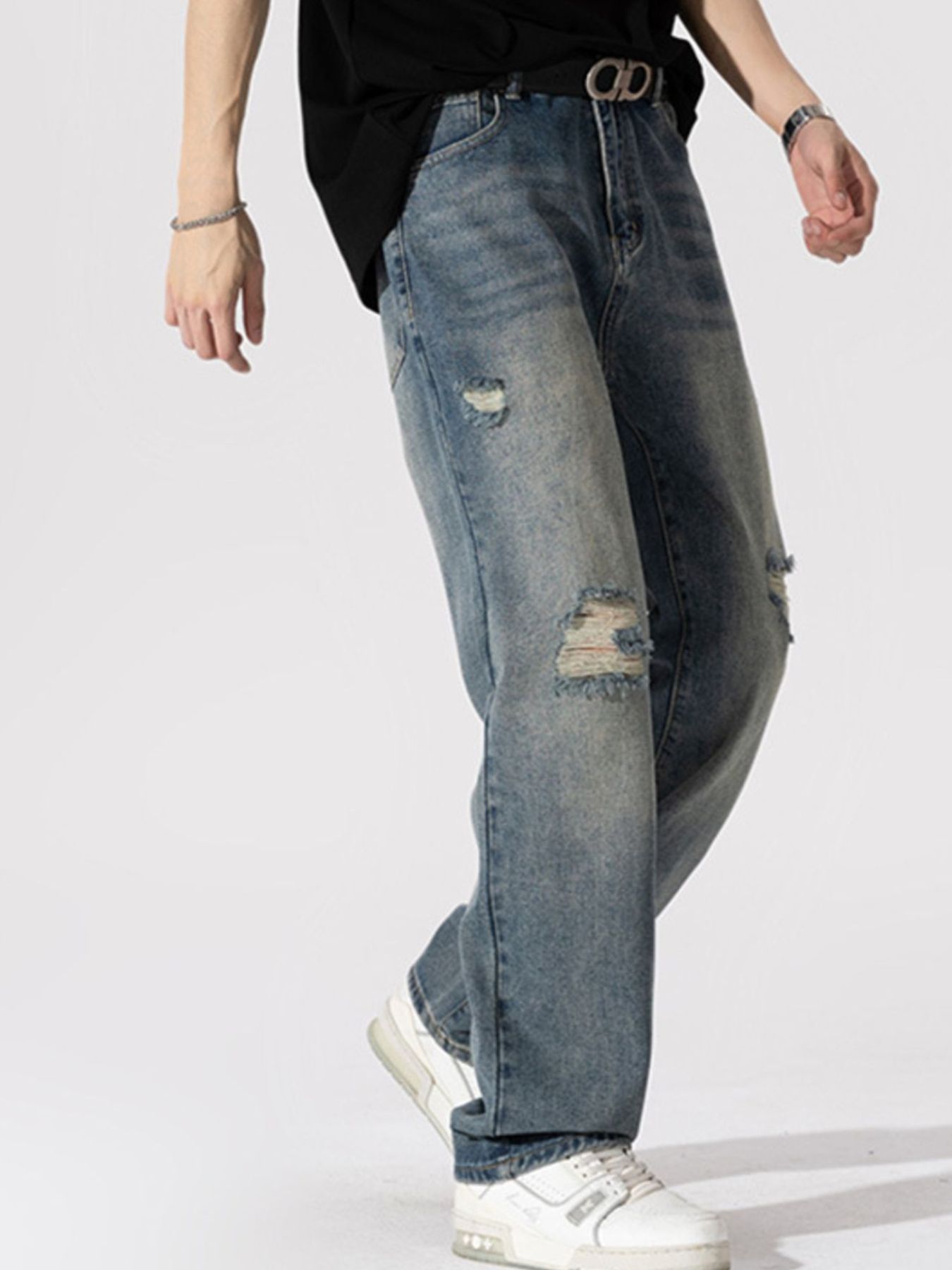 Men's Distressed Wide Leg Jeans