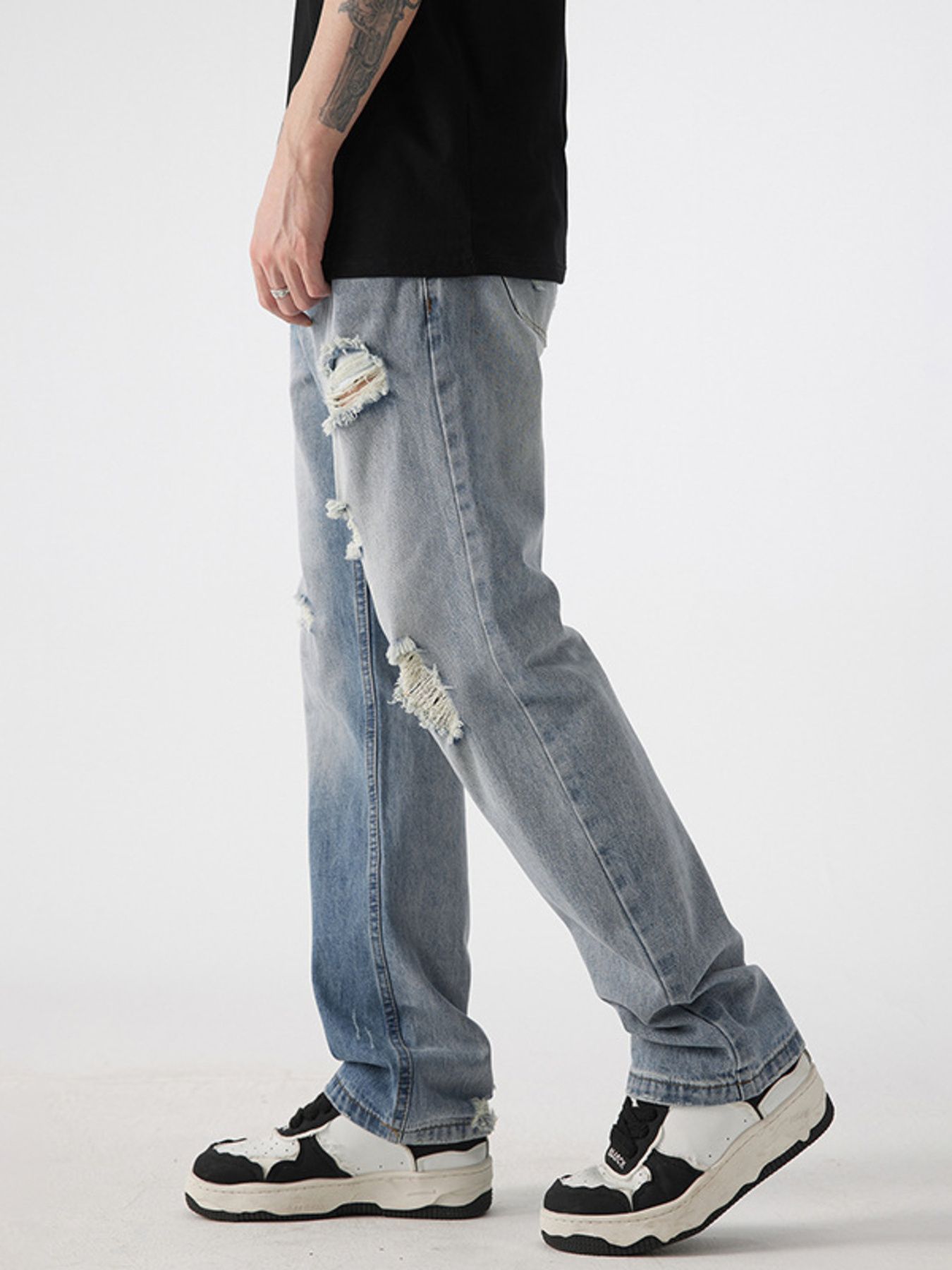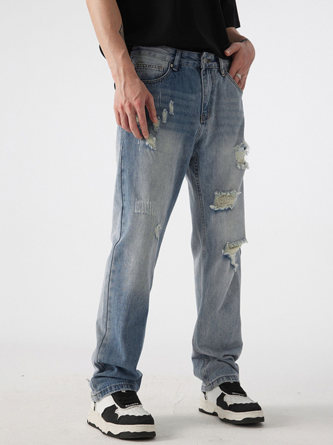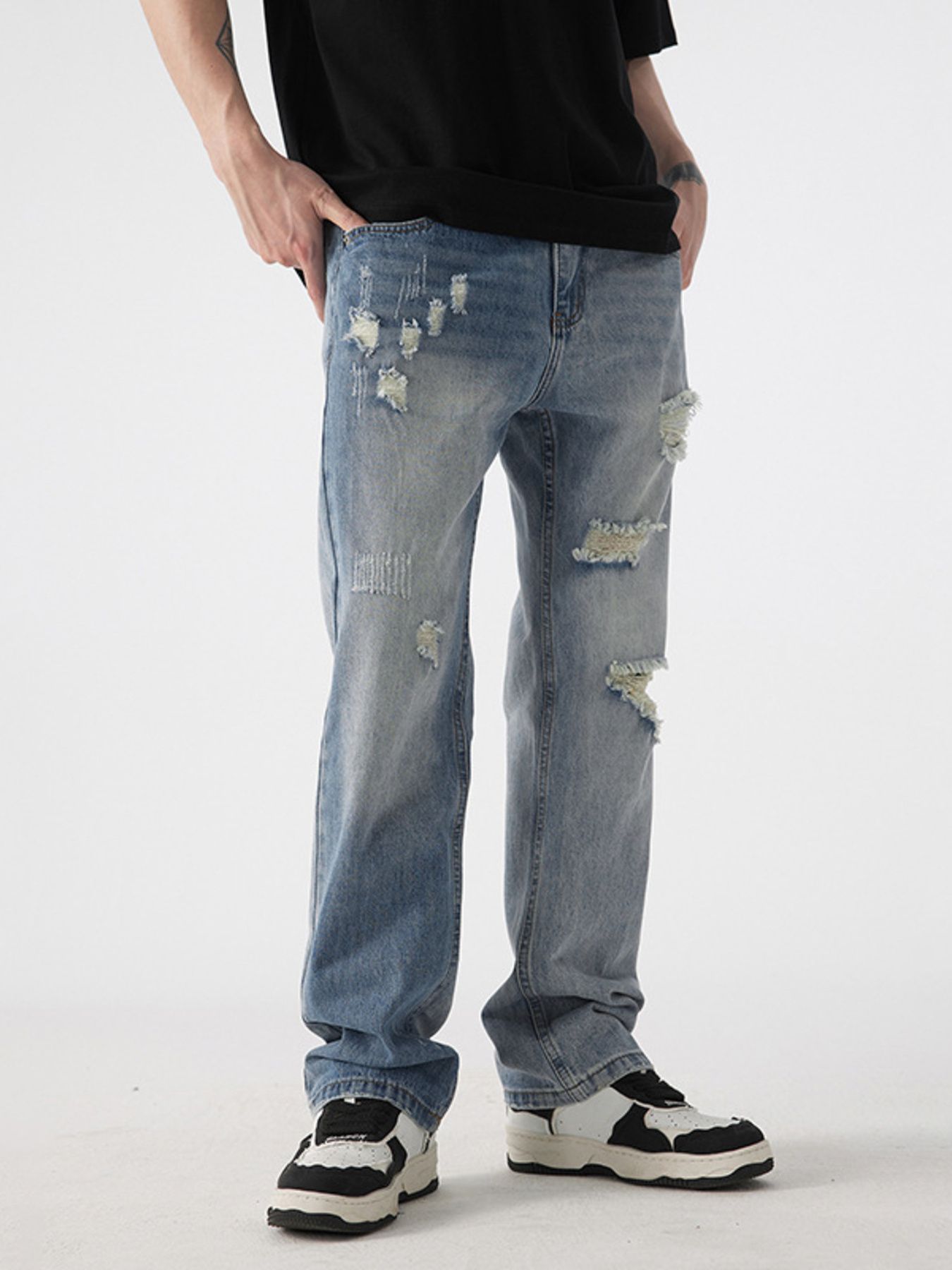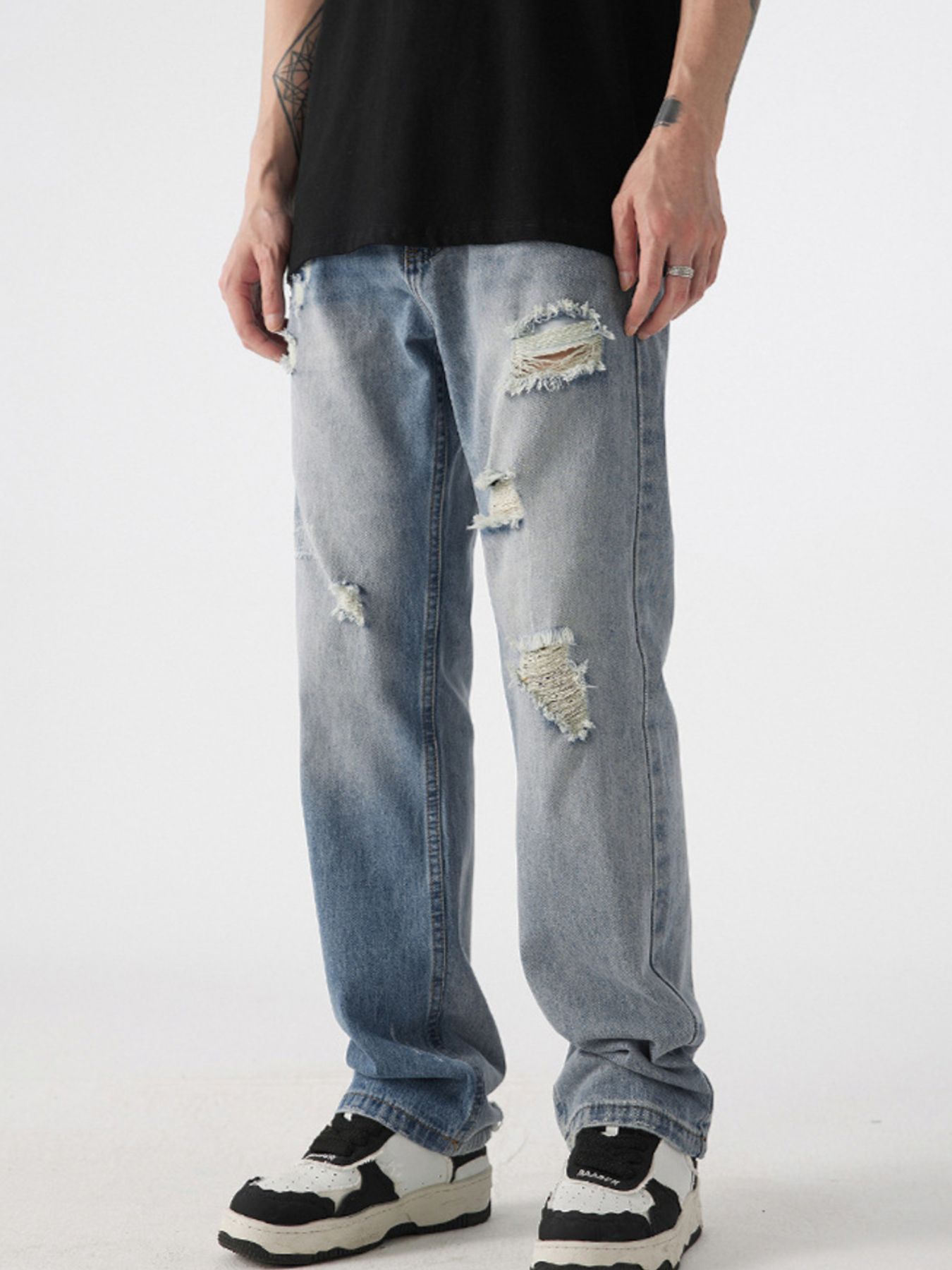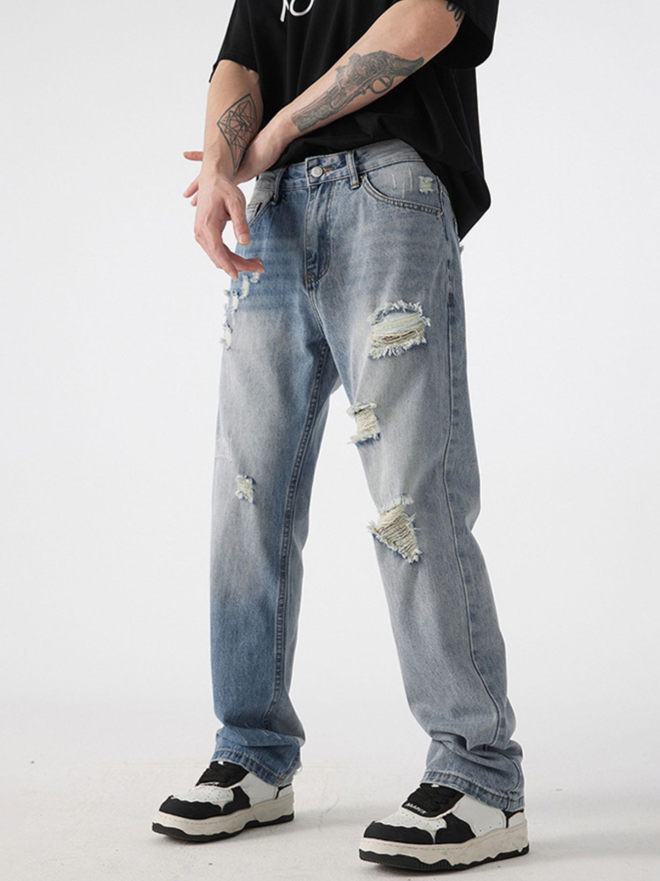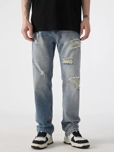 Men's Distressed Wide Leg Jeans