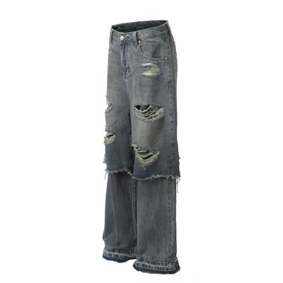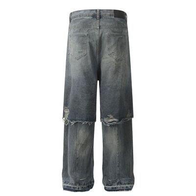 Men's Distressed Wide Leg Layered Denim Jeans