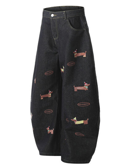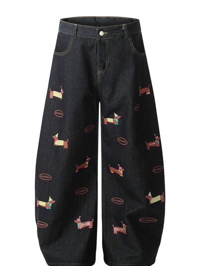 Men's Dog Pattern Wide Leg Jeans