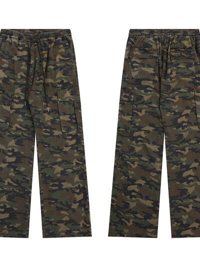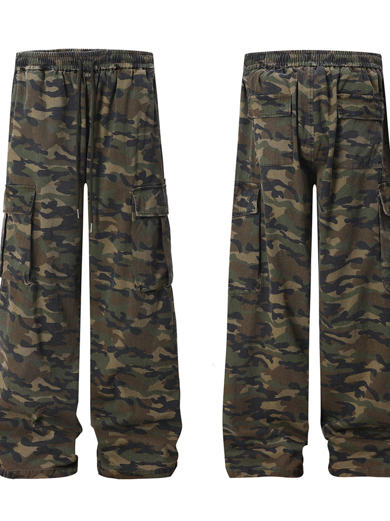 Men's Drawstring Camouflage Wide Leg Cargo Pants