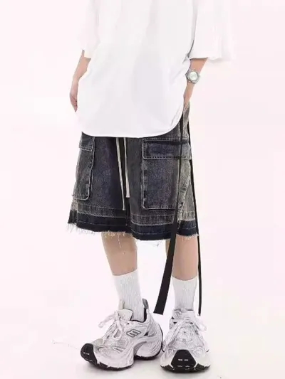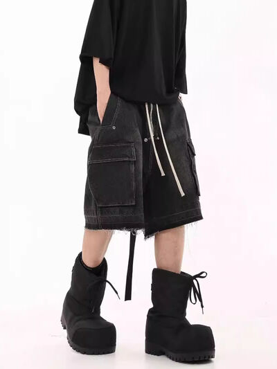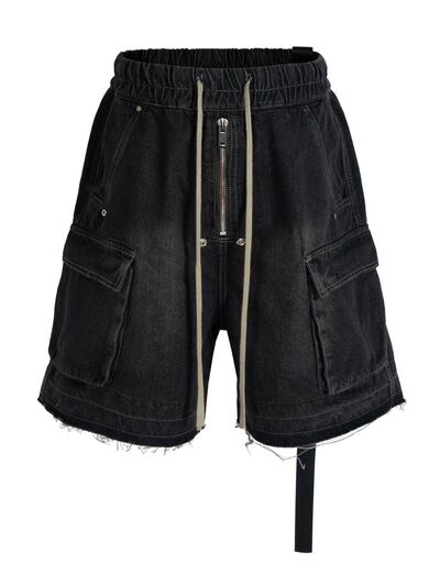 Men's Drawstring Cargo Denim Shorts with Zipper Detail