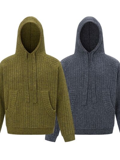 Men's Drawstring Ribbed Hooded Sweater