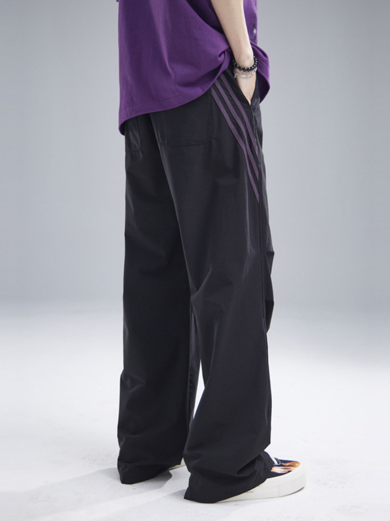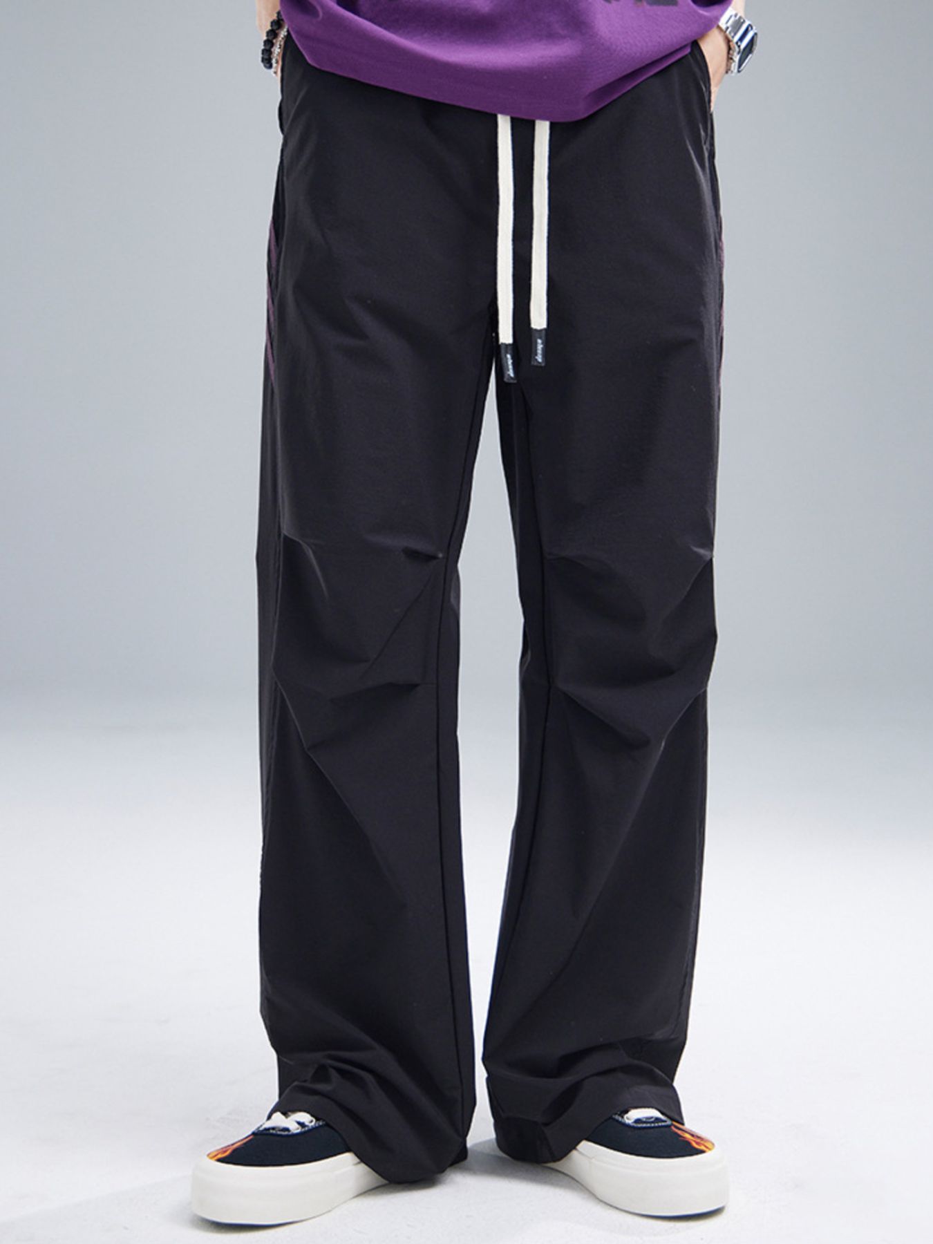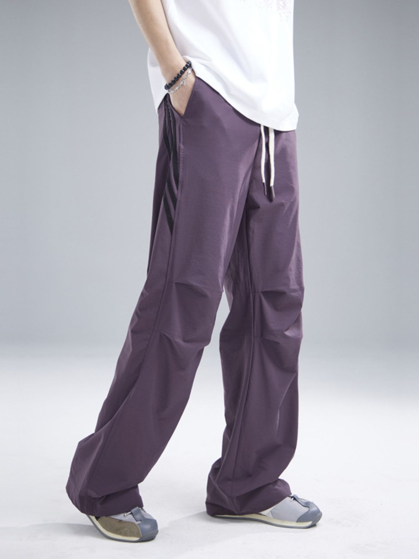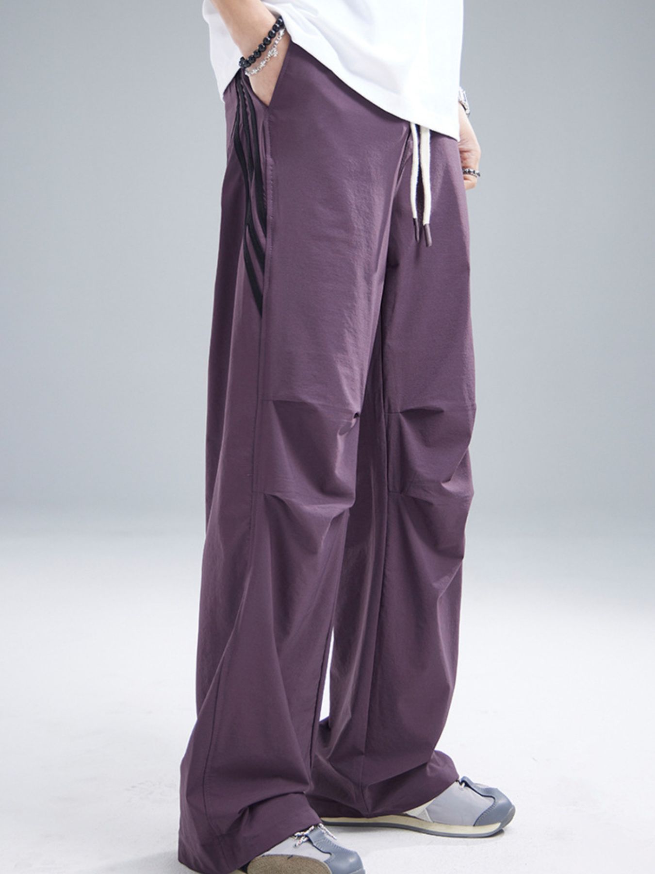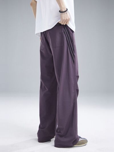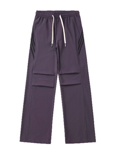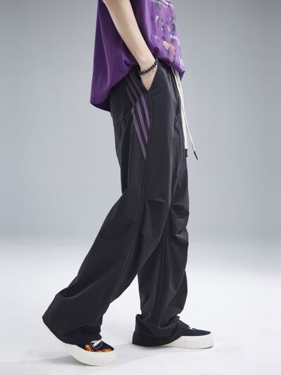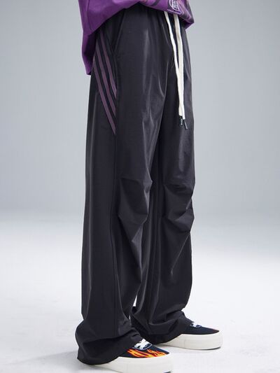 Men's Drawstring Ruched Pants with Side Stripes