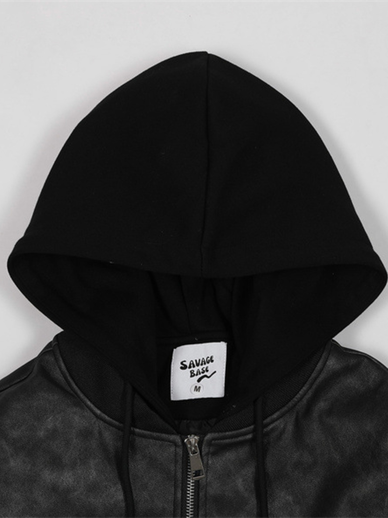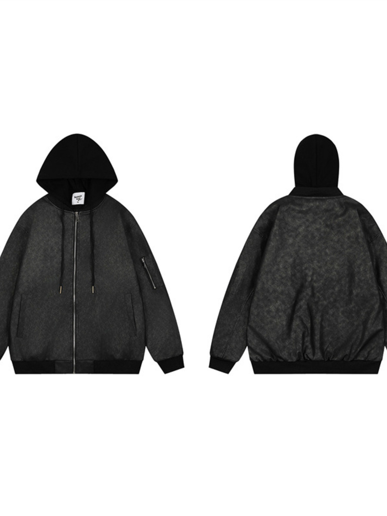 Men's Drawstring Washed Zip Up Hooded Jacket