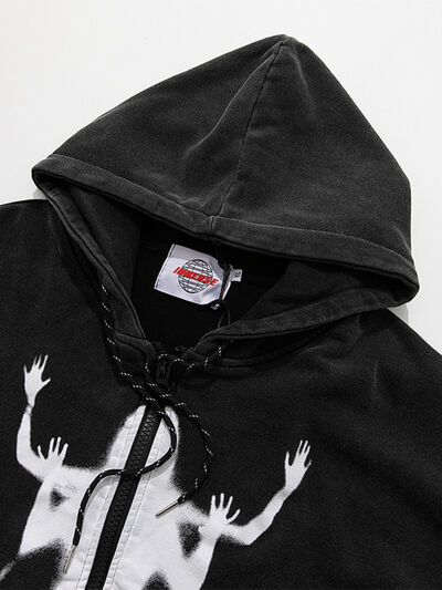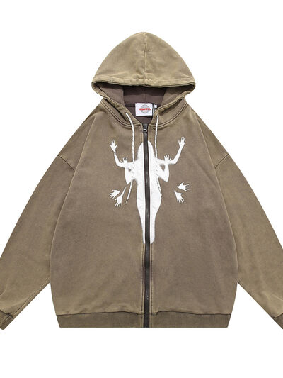 Men's Drawstring Zip Up Long Sleeve Hoodie