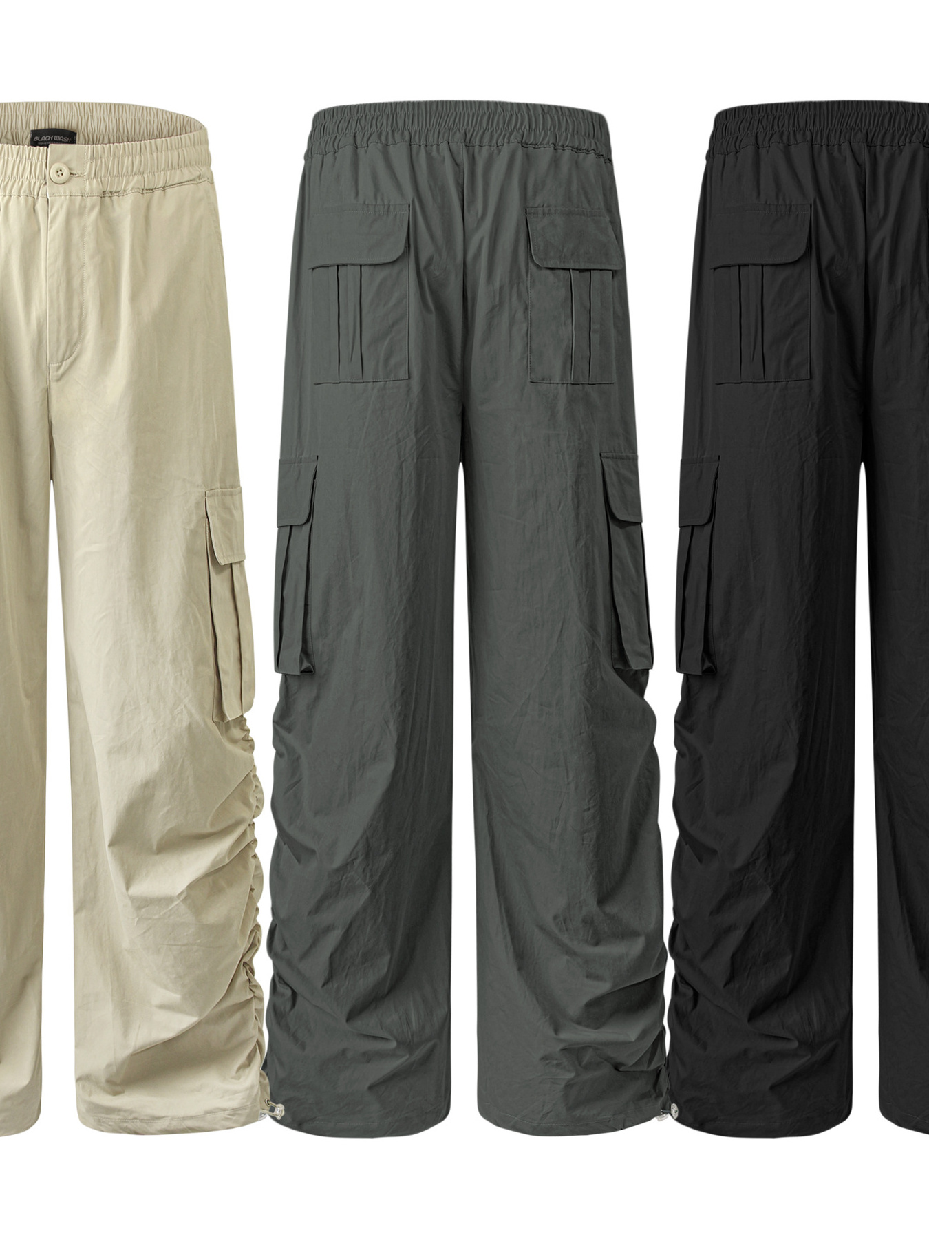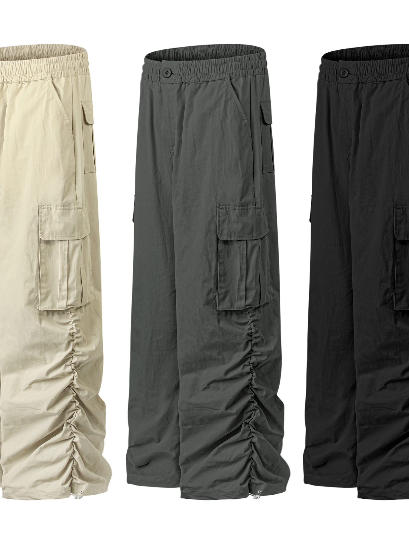 Men's Elastic Waist Wide Leg Cargo Pants with Side Pockets