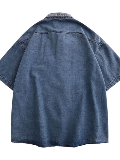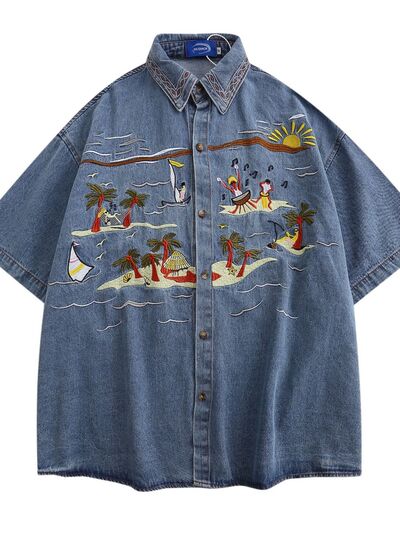 Men's Embroidered Oversized Short Sleeve Denim Shirt