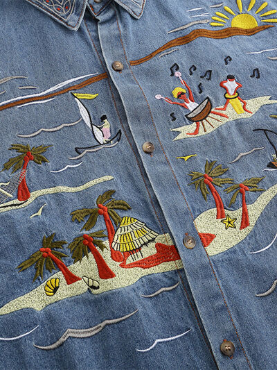 Features:Oversized,Buttoned,Embroidered,Pocketed,Washed