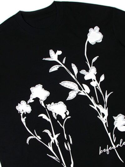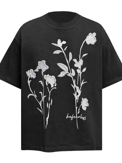 Men's Flower Pearl Detail Oversized Short Sleeve T-Shirt